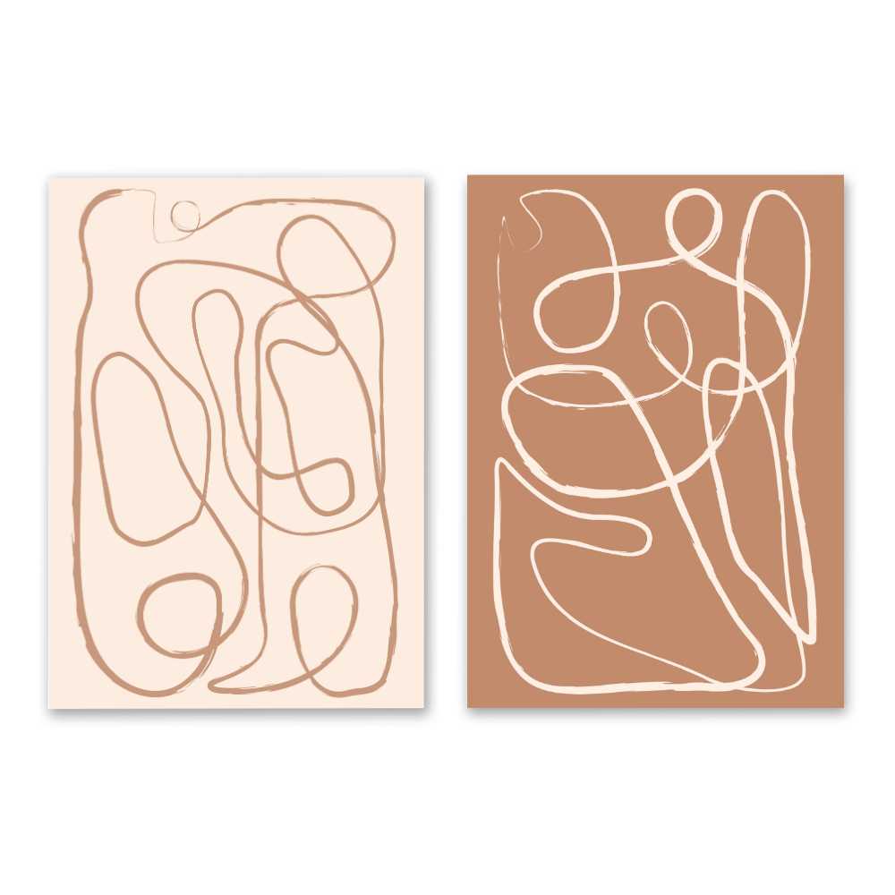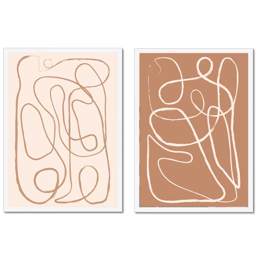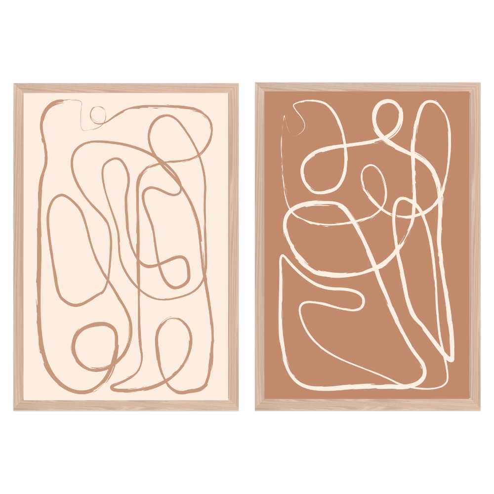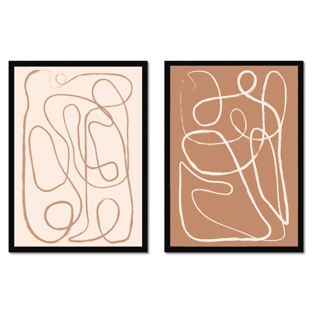 Both prints are rendered with a minimalist approach, allowing the beauty and simplicity of the line art to shine. The squiggles, with their fluid and uninterrupted form, create a sense of movement and dynamism, making each print captivating in its understated way.