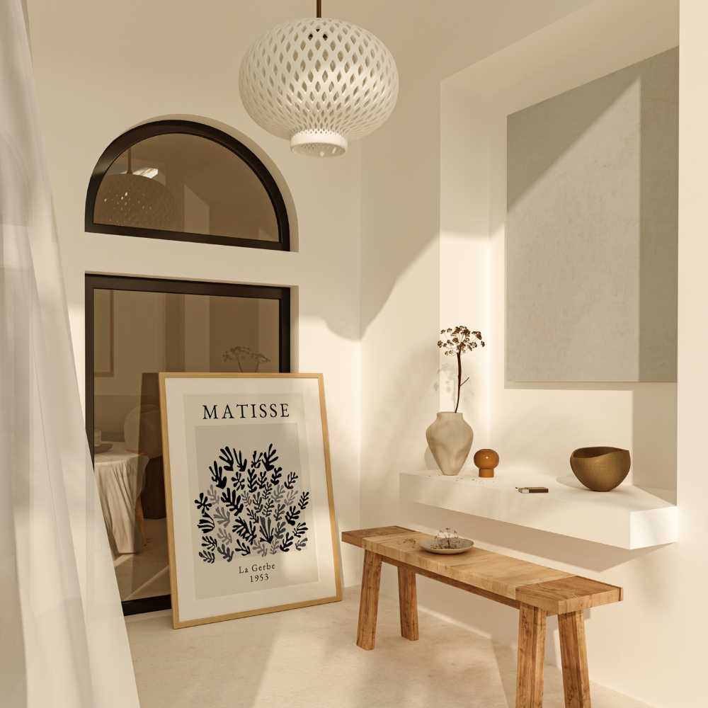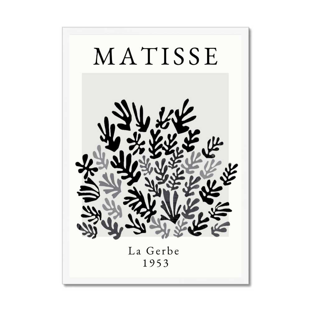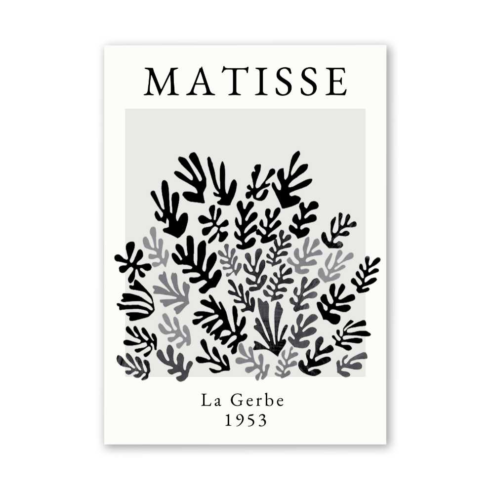 Experience the timeless beauty of Henri Matisse's work through a contemporary lens with "Monochromatic La Gerbe," a stunning reimagining of the iconic "La Gerbe" in a striking black, white, and grey palette. This piece transforms the original's vibrant colour scheme into a study of shades and contrasts, offering a fresh and modern interpretation of one of Matisse's most celebrated creations.