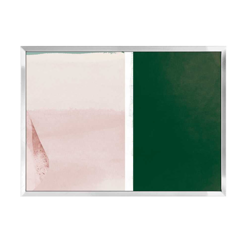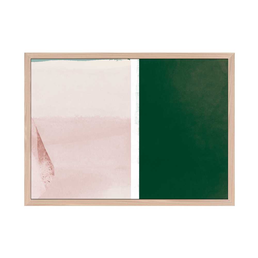 Pink and Emerald Harmony" is a captivating piece of wall art that presents a vivid exploration of contrast and balance through its striking use of pink and emerald green colours. This artwork is thoughtfully divided into two distinct halves by a slender white band, creating a visual narrative that speaks to the harmonious coexistence of differing elements. On one side, varying shades of soft, inviting pink unfold in a gentle gradient, symbolizing warmth, tenderness, and the dawning of light. On the opposite side, a deep, rich tone of emerald green, evoking the lushness of nature, depth, and rejuvenation.