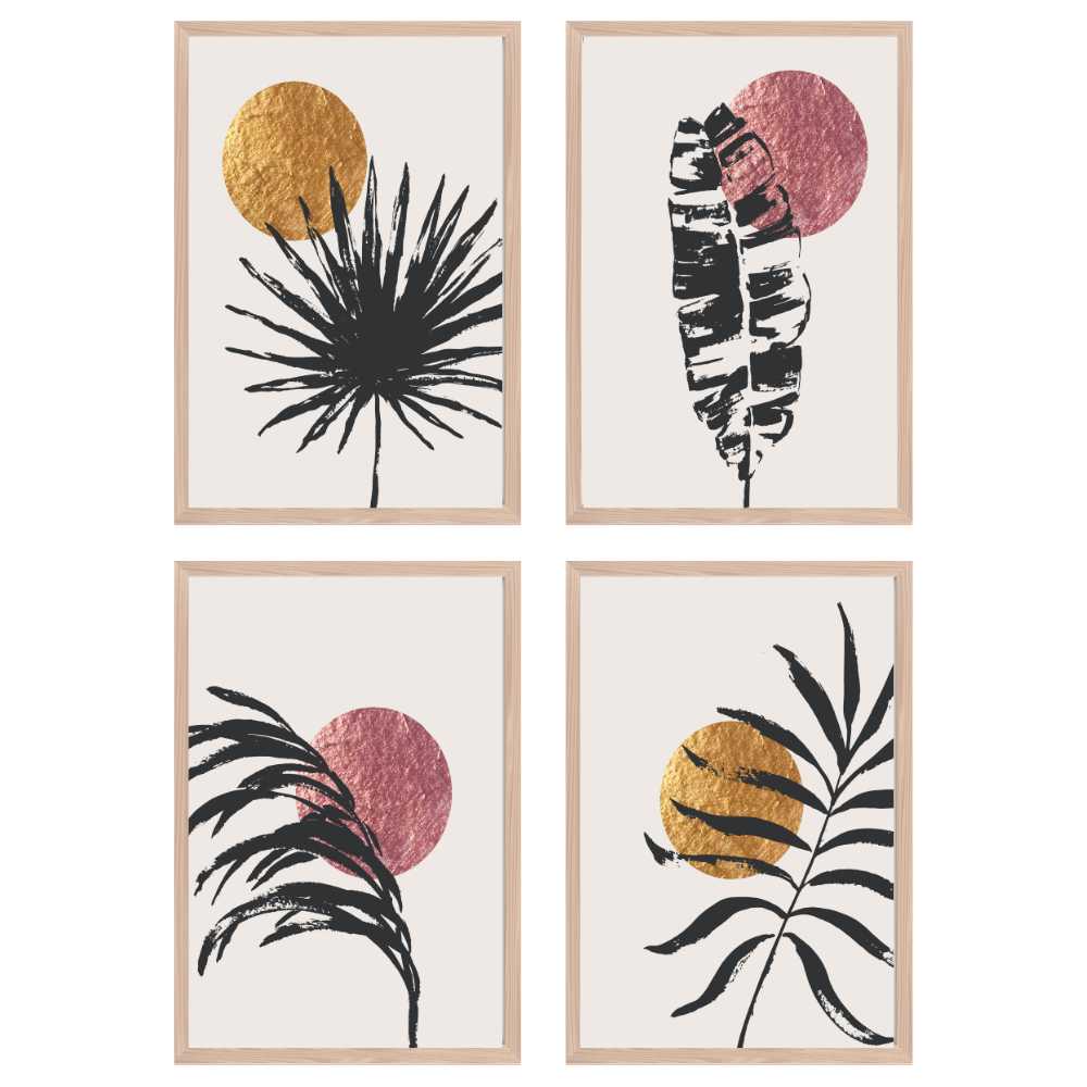 This set of four abstract prints offers versatility in display options. Arrange them together to create a stunning gallery wall that becomes the centre piece of your room, or hang them separately to weave a cohesive, nature-inspired theme throughout your space. They are perfect for adorning the walls of a living room, bedroom, study, or any space that could benefit from a touch of nature's serenity and the night sky's mystery.