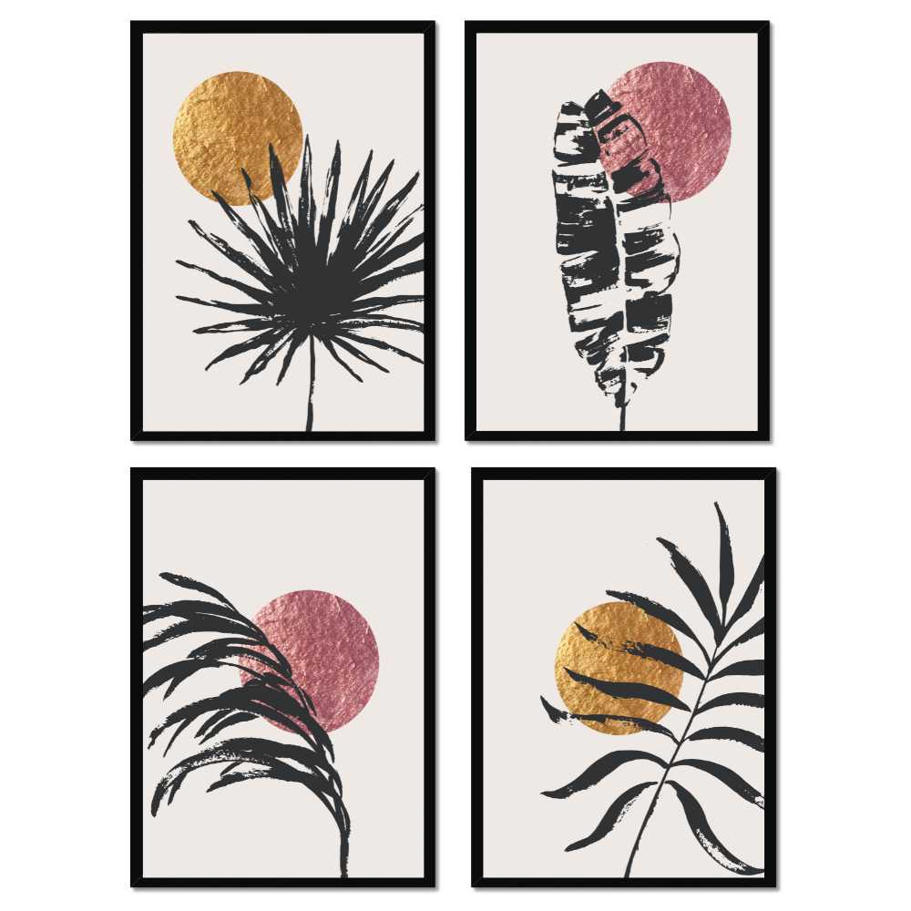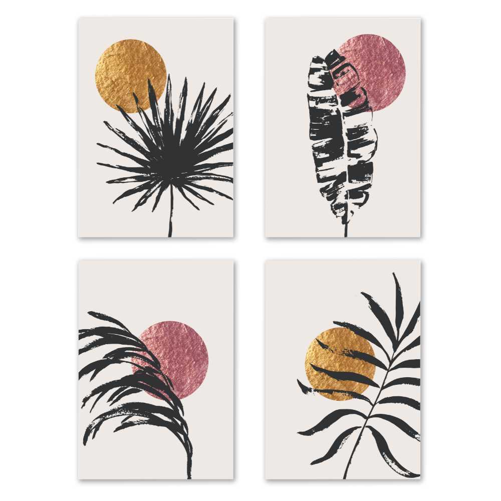 Indulge in the mystical fusion of nature and the cosmos with our "Lunar Botanica Collection," a captivating set of four botanical prints that blend abstract leaf designs with the opulent shimmer of gold and rose gold moons. This exquisite collection is a celebration of ethereal beauty and contemporary elegance, perfect for adding a touch of sophisticated whimsy to any modern interior.