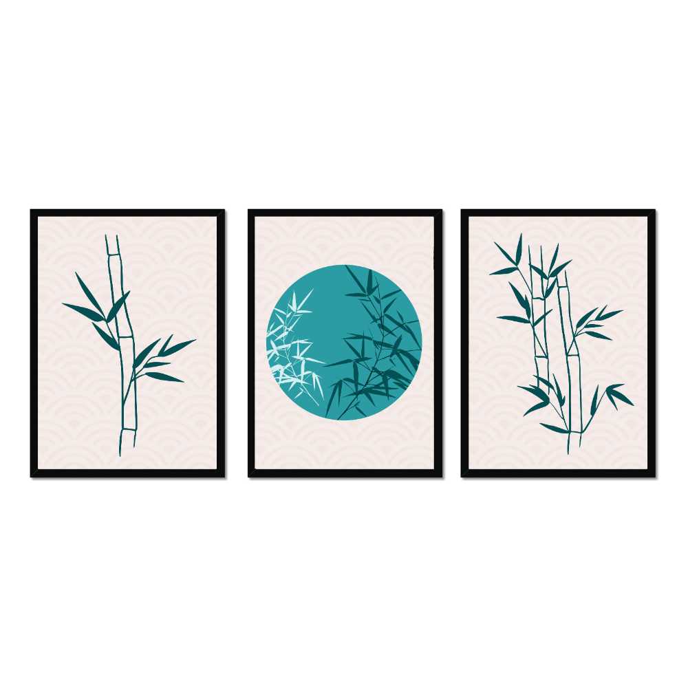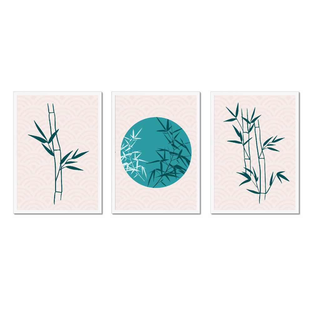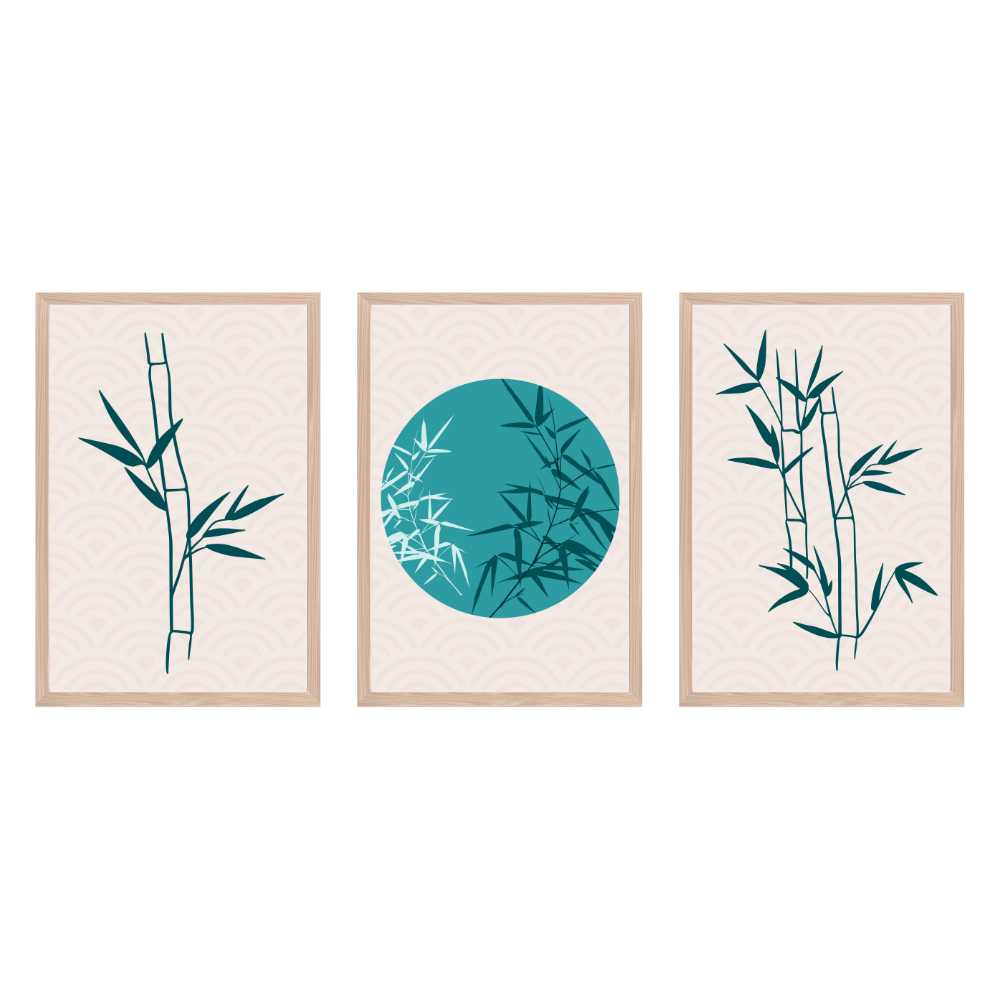 Each print showcases the slender and graceful forms of bamboo, an iconic symbol in Japanese culture representing strength, flexibility, and resilience. The turquoise colour of the bamboo brings a contemporary twist to the traditional subject, adding a touch of freshness and modernity to the classic imagery.
