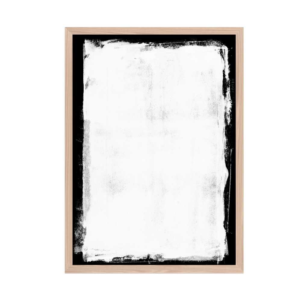 This art print features a strikingly bold white abstract painted rectangle on a black canvas - a modern and sophisticated approach to minimalist design.