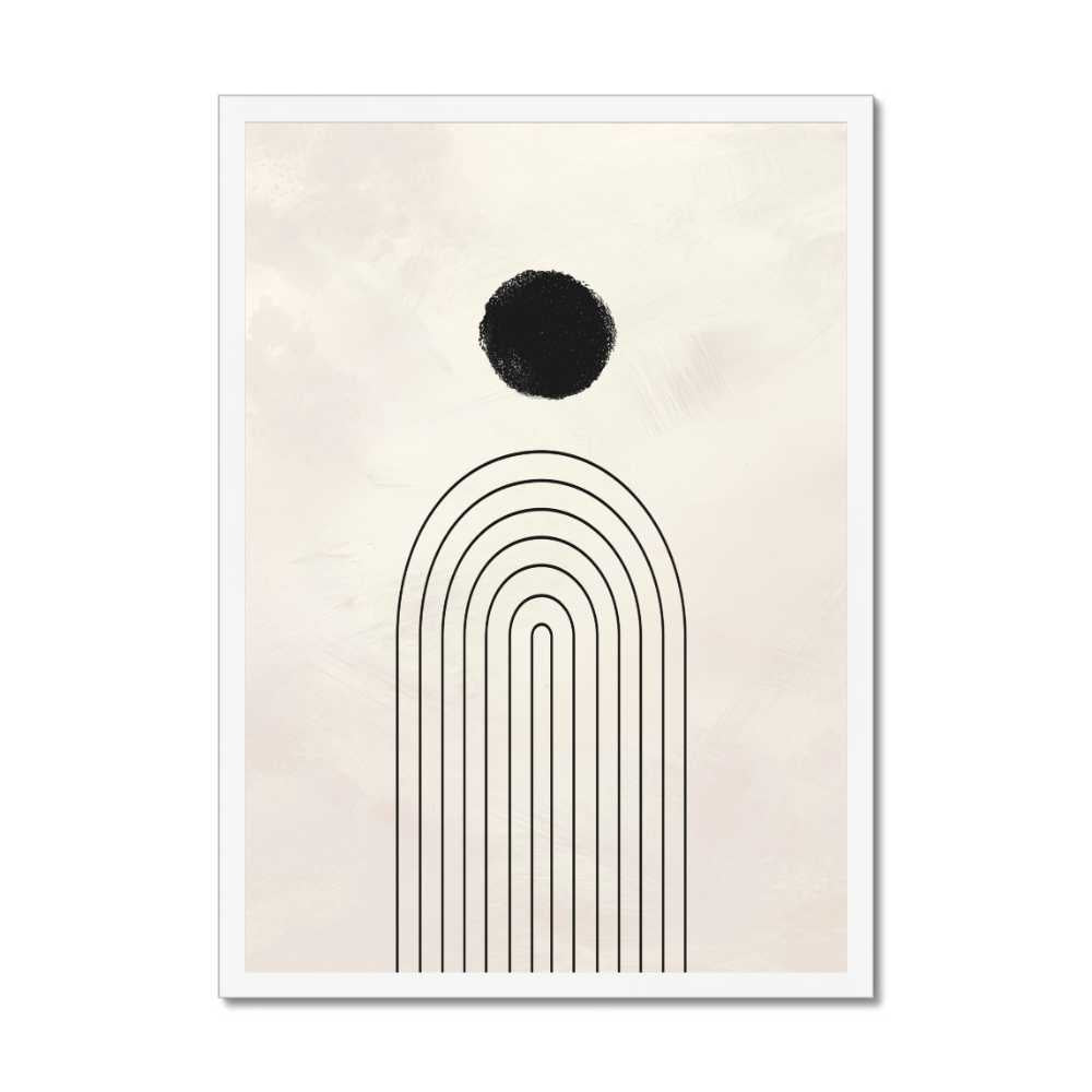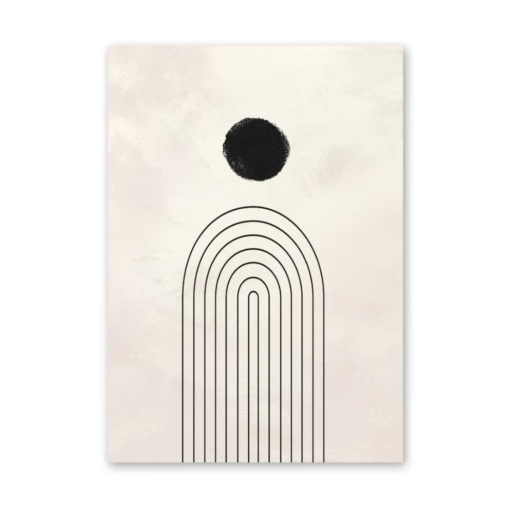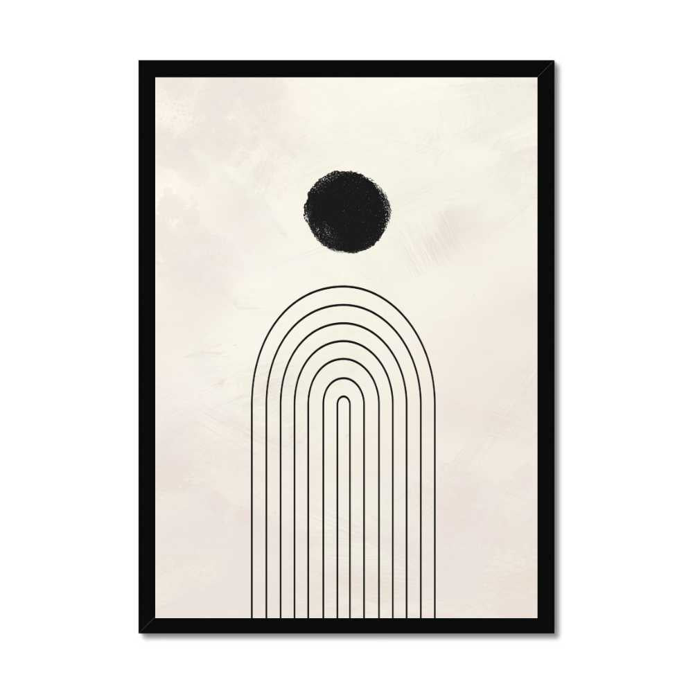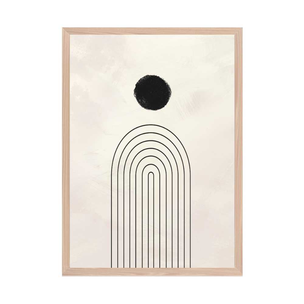 Step into a world of sublime serenity with our captivating wall art print, "Eclipse of Radiance." This exquisite piece invites you to explore the delicate balance between light and shadow, as a mesmerising abstract beige background serves as the canvas for a striking black rainbow outline.