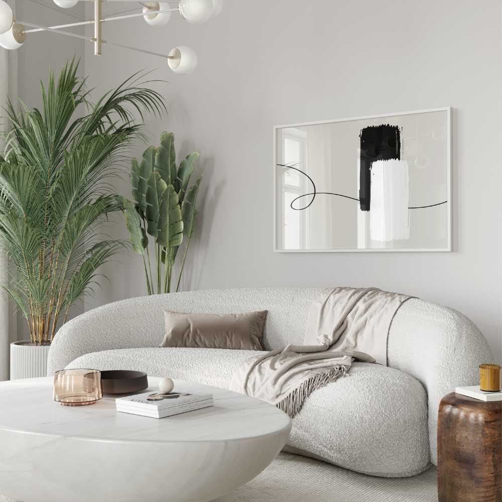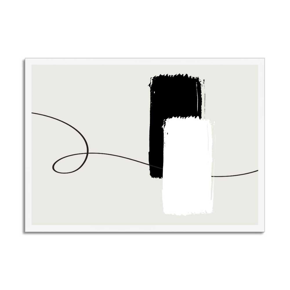 "Linear Contrast" is a striking and sophisticated wall art piece that captures the essence of minimalist abstract expression. This compelling artwork features a singular, flowing black line traversing across the beige canvas, intersected by one bold black and one crisp white rectangular stroke of paint. This piece is a masterful exploration of form, colour, and space, making it an ideal choice for modern and minimalist interiors that celebrate bold, conceptual art.