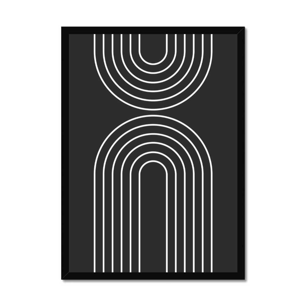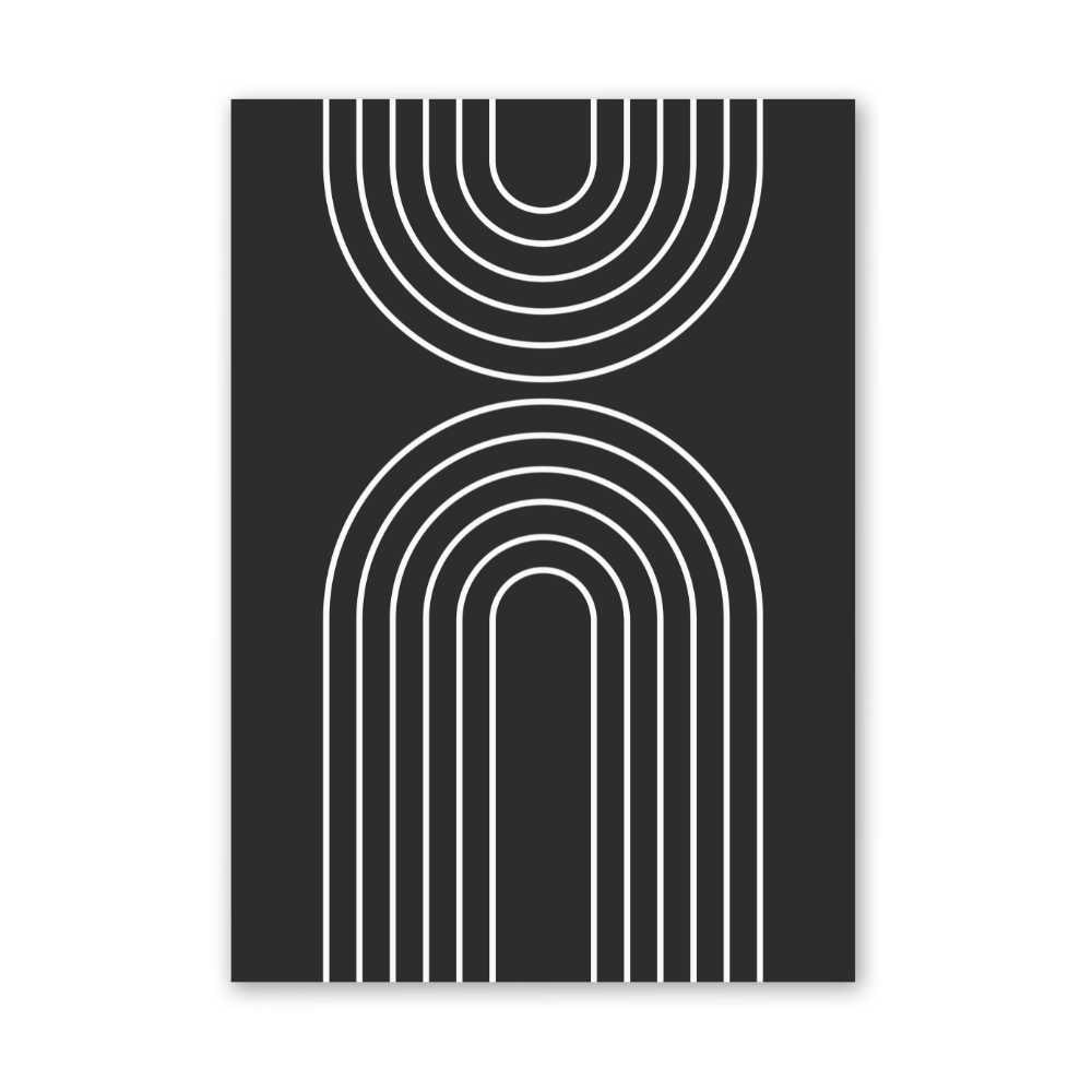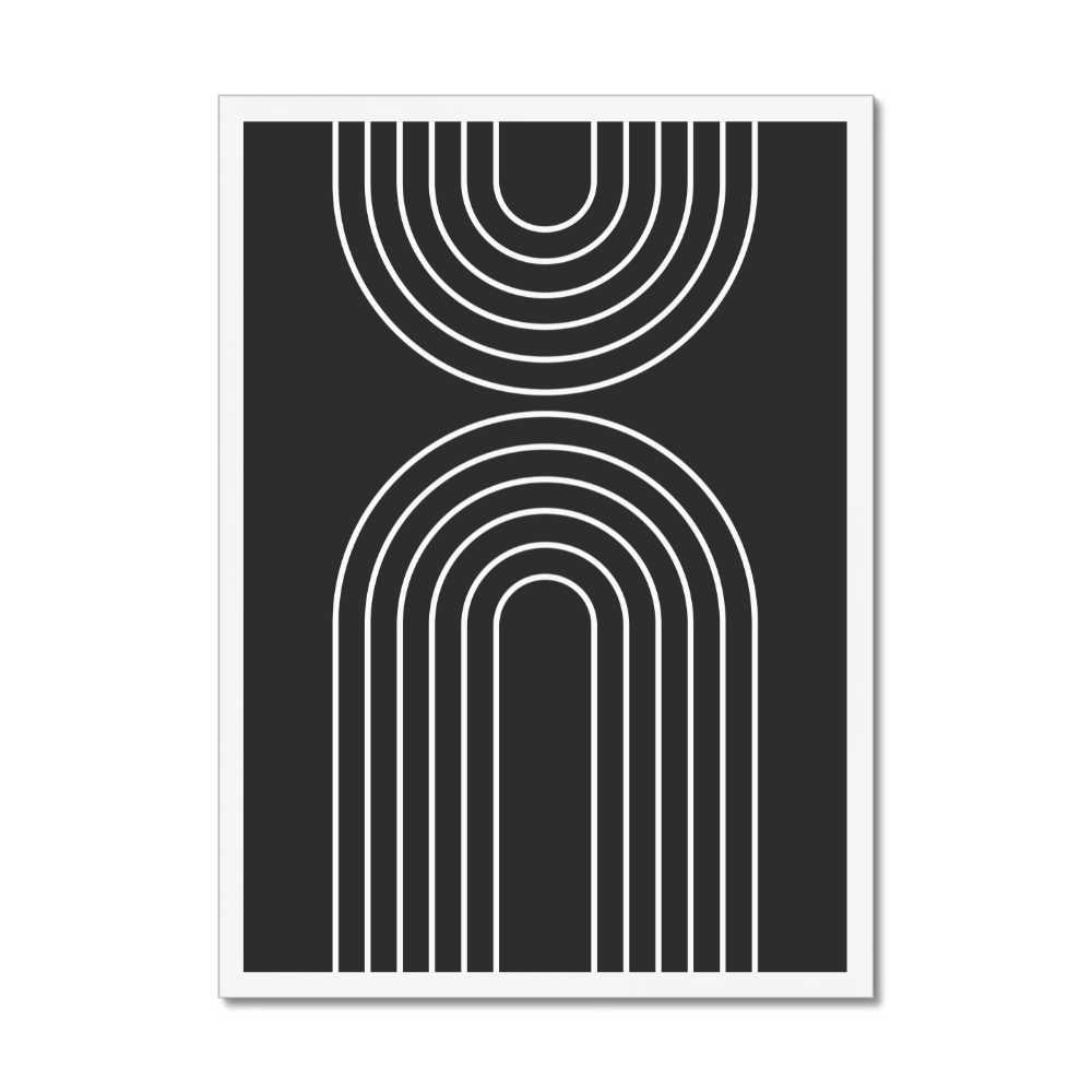 Immerse yourself in the bold and mesmerising world of "Eternal Arches," a striking wall art piece that showcases the beauty and simplicity of geometric forms. This artwork features two perfectly symmetrical arches formed by elegant white lines, set against a deep black background. The composition consists of one large arch with a smaller arch gracefully nested on top, creating a sense of balance and harmony that is both modern and timeless.