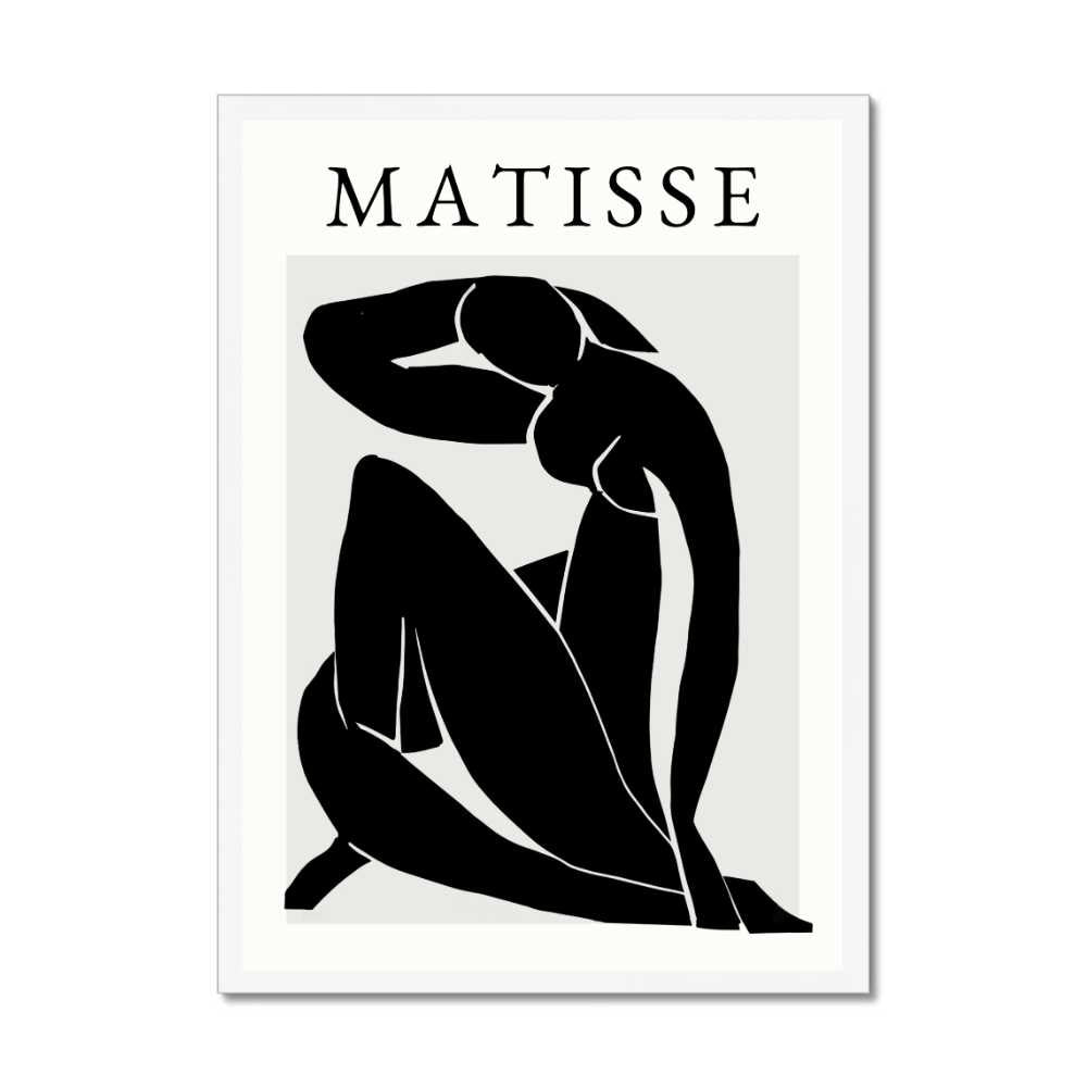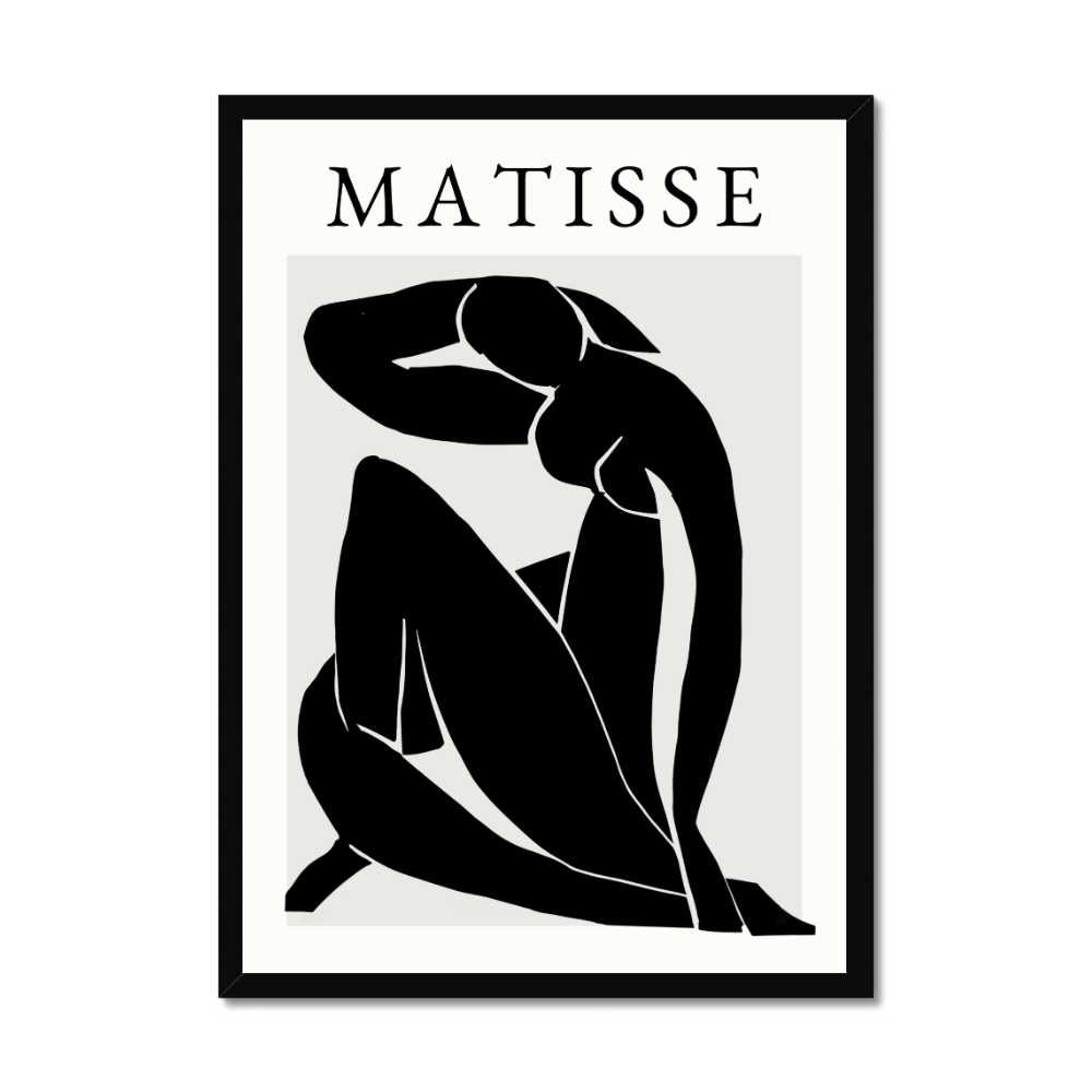 Embrace the timeless grace and fluid simplicity of Henri Matisse with our "Elegant Contours" print, a striking representation of the artist's iconic nude studies. This piece showcases Matisse's masterful ability to capture the human form with minimal lines, rendered here in bold black against a serene grey background. This print pays homage to Matisse's unique style, blending the classic beauty of his subject matter with a modern, minimalist aesthetic.