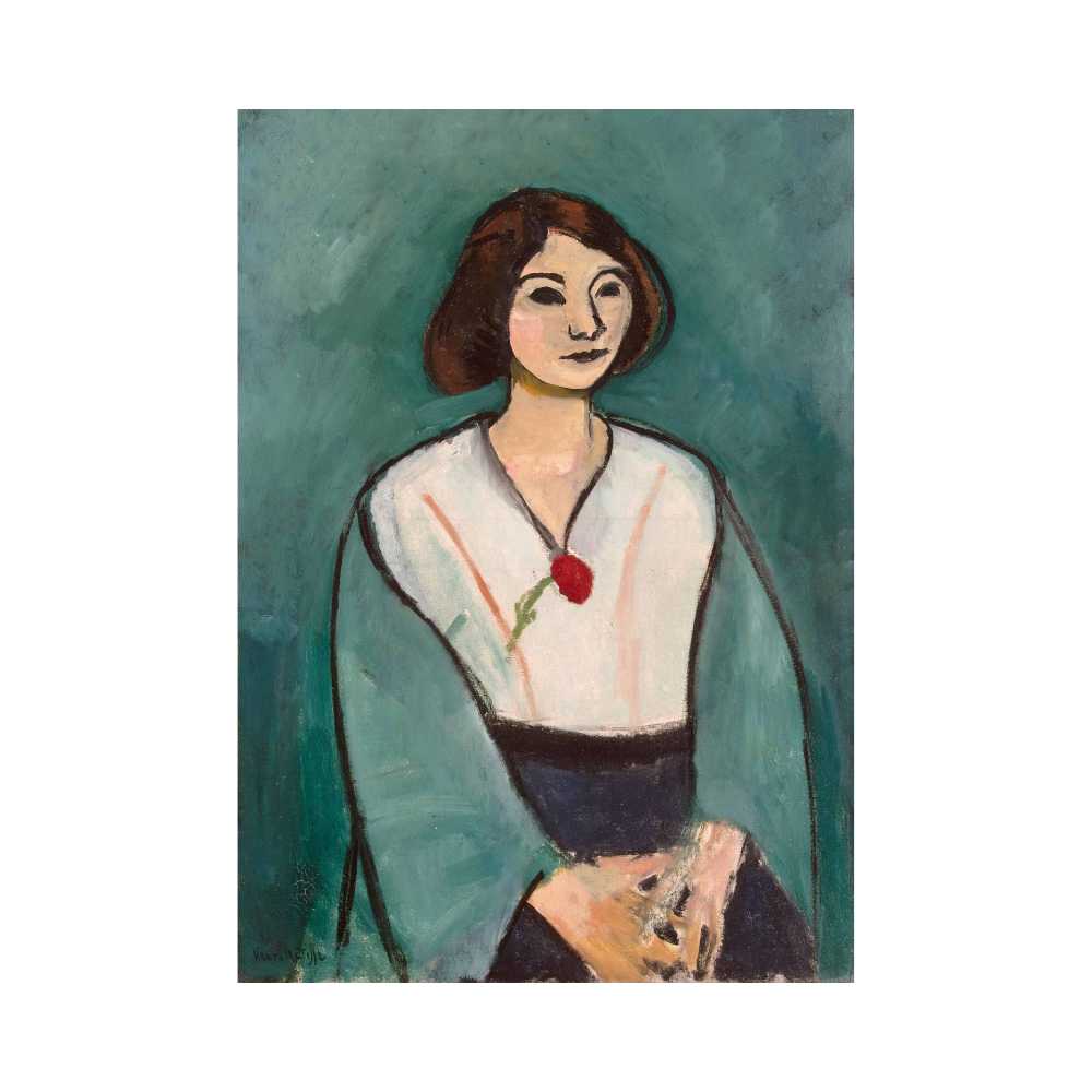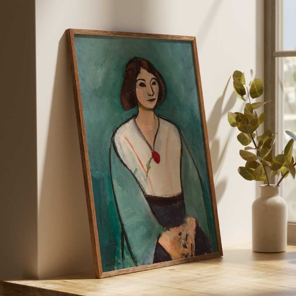 This wall art print is called Woman in Green, a striking and expressive work by Henri Matisse, one of the most influential artists of the 20th century.