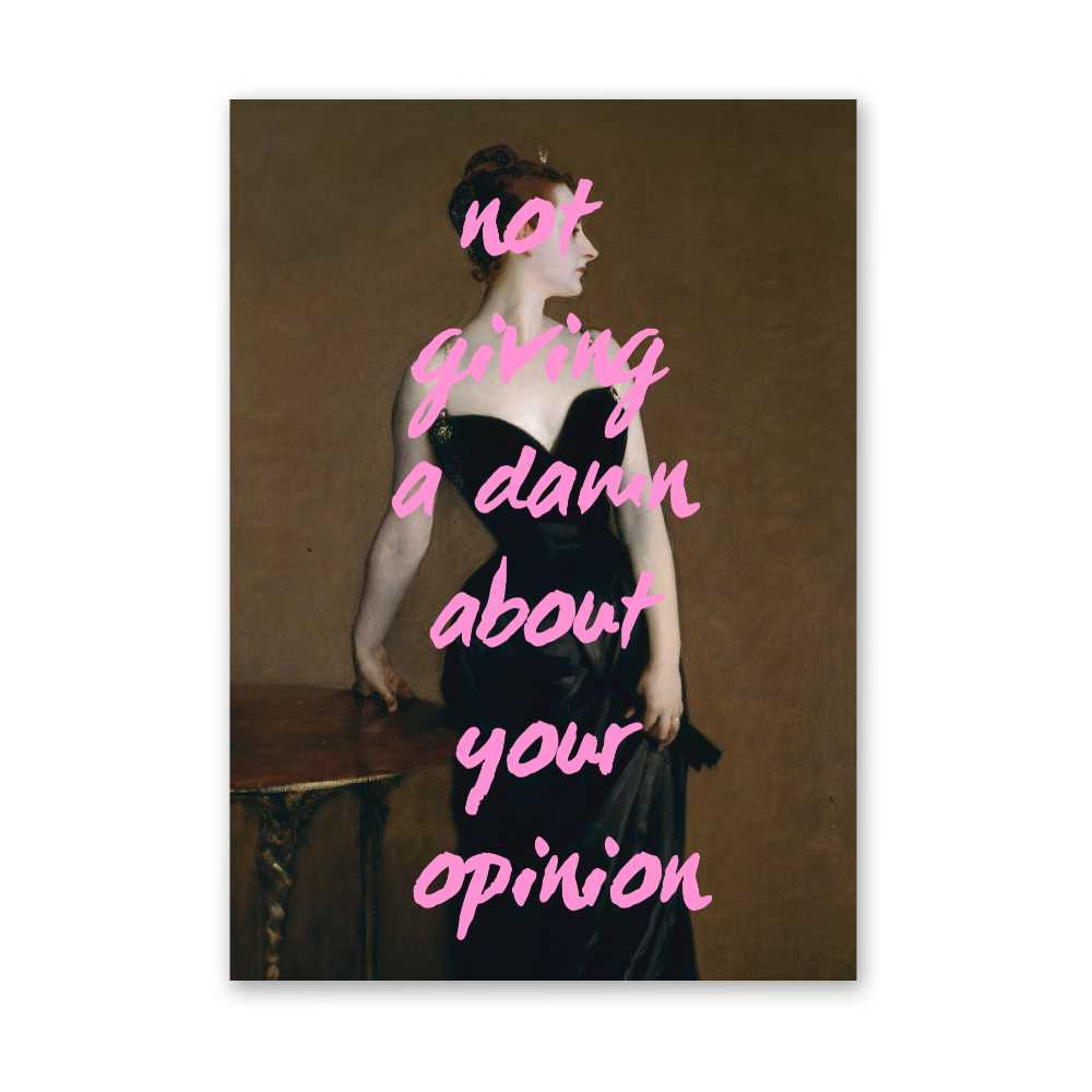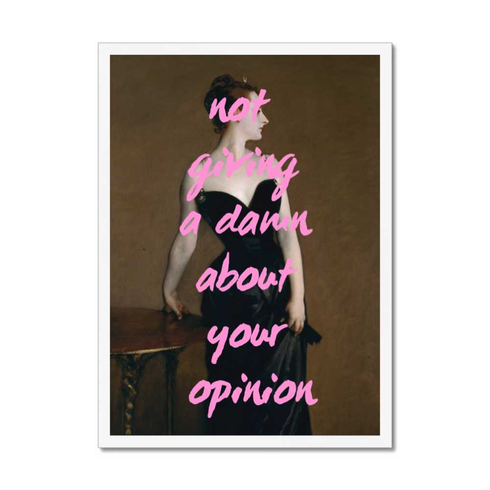 This wall art print is perfect for those looking to bring together the classic sophistication of an old portrait and the playful edge of a modern quirky sentiment. The scrawled, pink and bold, graffiti-style quote injects a contemporary and irreverent spirit into this traditional portrait.