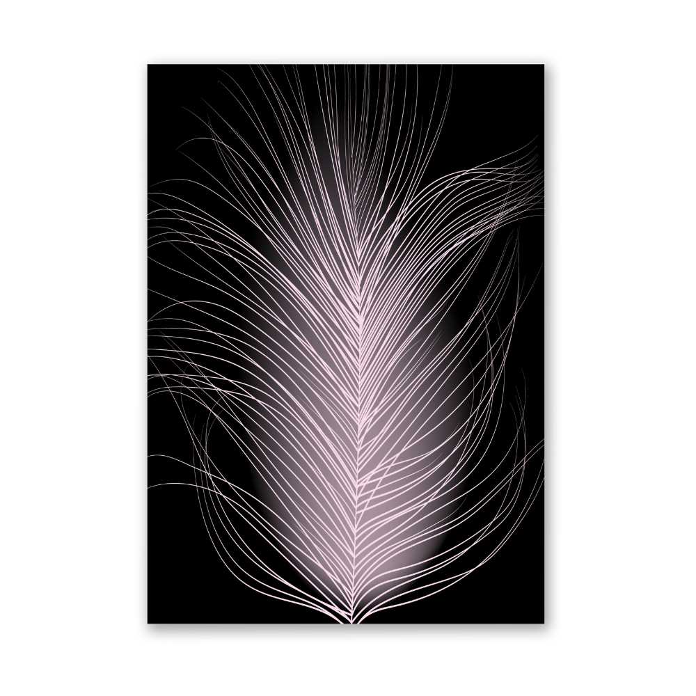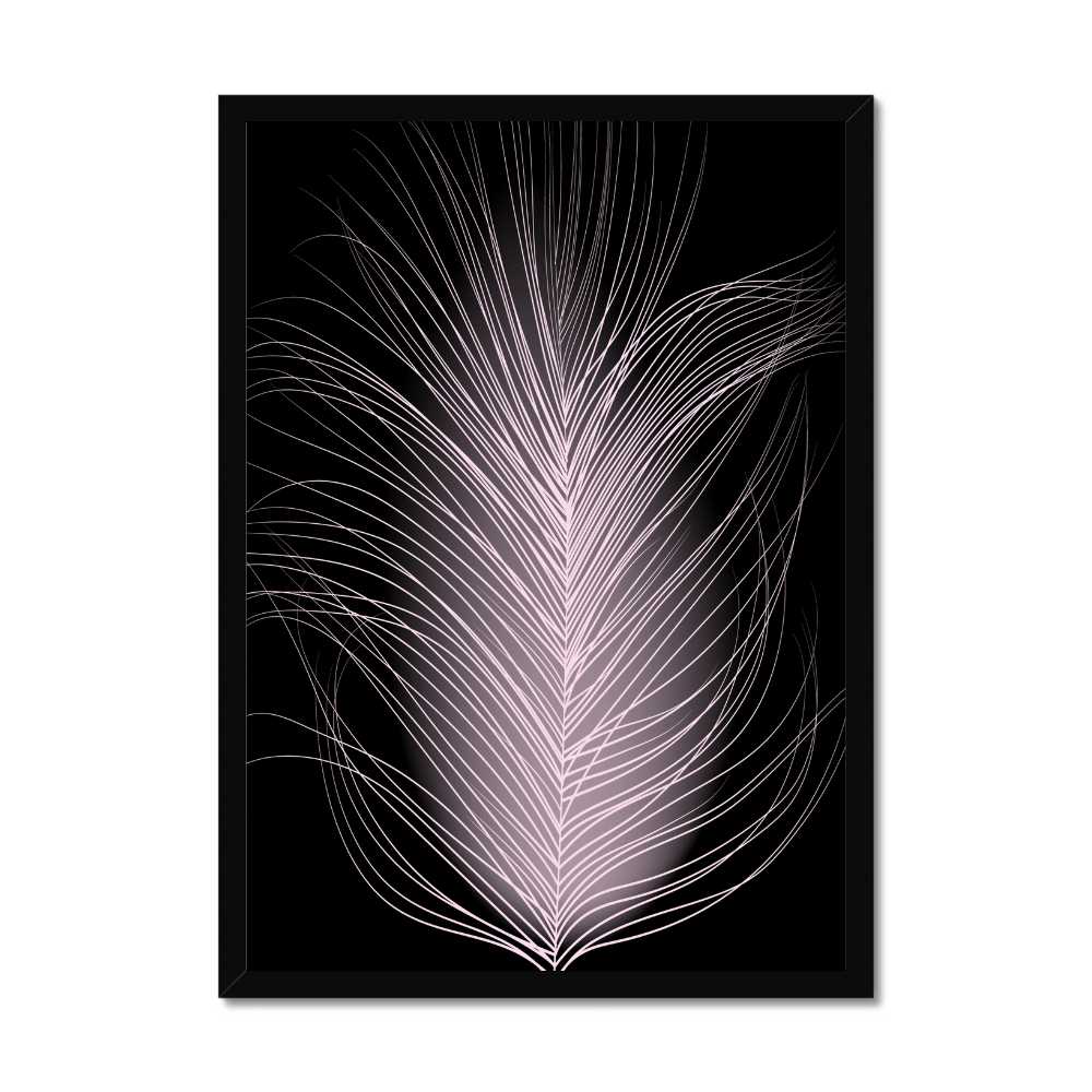 Aa striking piece of wall art that features a delicate pink feather set against a deep black background. This artwork is simplicity and contrast, creating a dramatic and elegant visual statement that is perfect for contemporary interiors and for those who appreciate a touch of natural beauty in a modern, minimalist style.