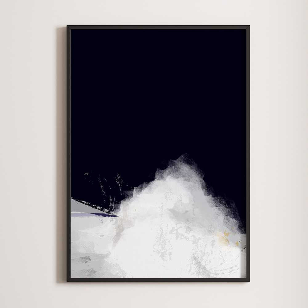 Instantly download and print this wall art print. An abstract wall art featuring a bold navy blue background with a striking white mountain peak, capturing solitude, achievement and modern minimalist style. This contemporary mountain artwork blends deep contrast and clean form, inspired by nature and abstract design.