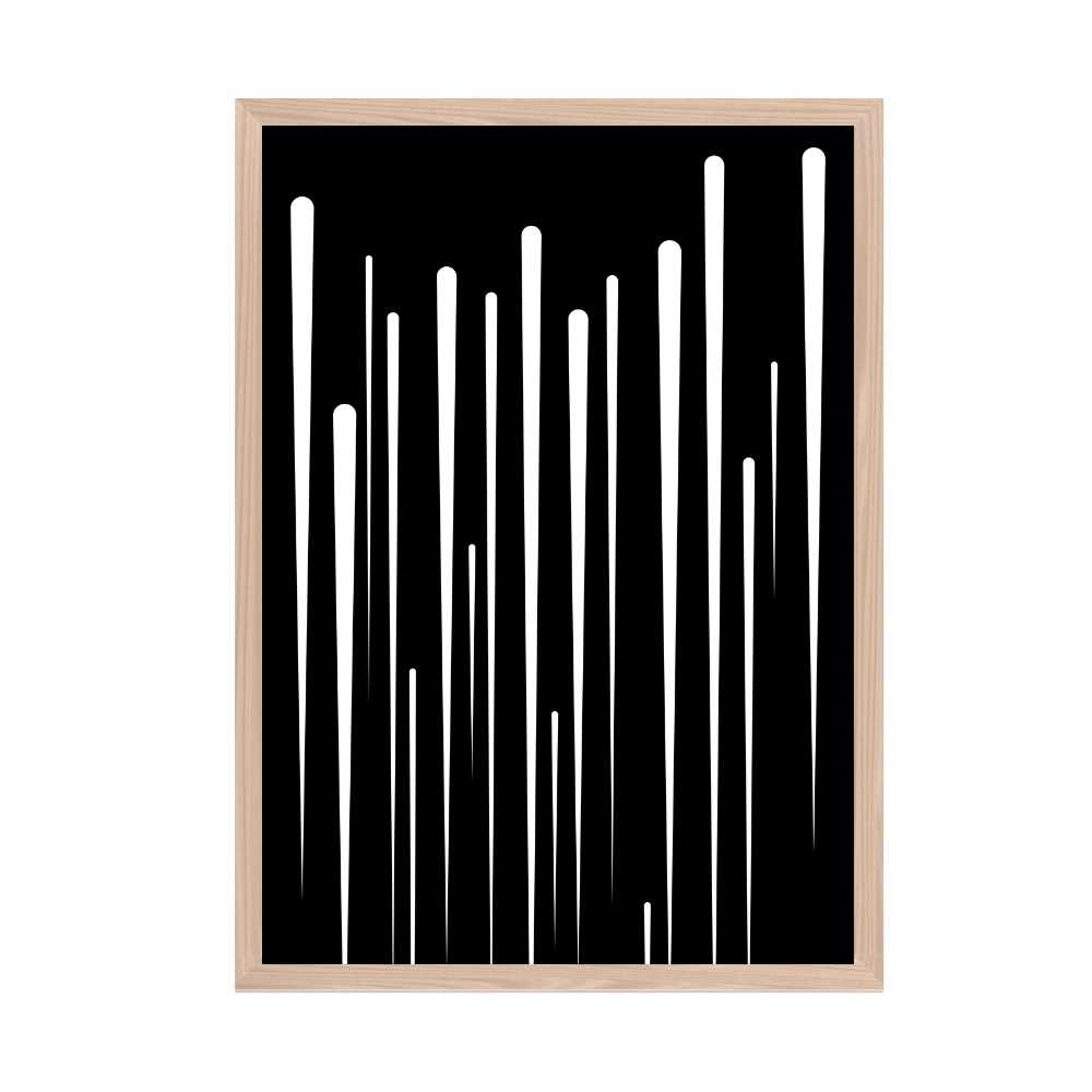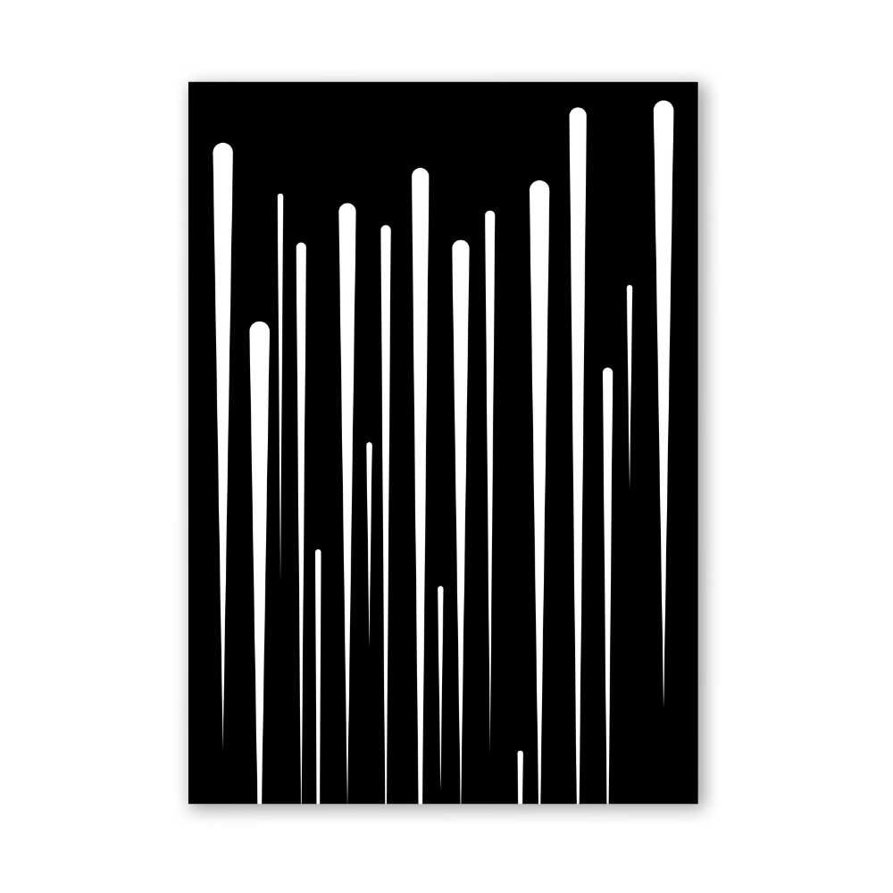 "Monochrome Minimalism" is a striking piece of wall art that captures the essence of contemporary simplicity and elegance. This artwork features a bold black background overlaid with white abstract vertical lines, creating a visually captivating contrast that is both stark and sophisticated.