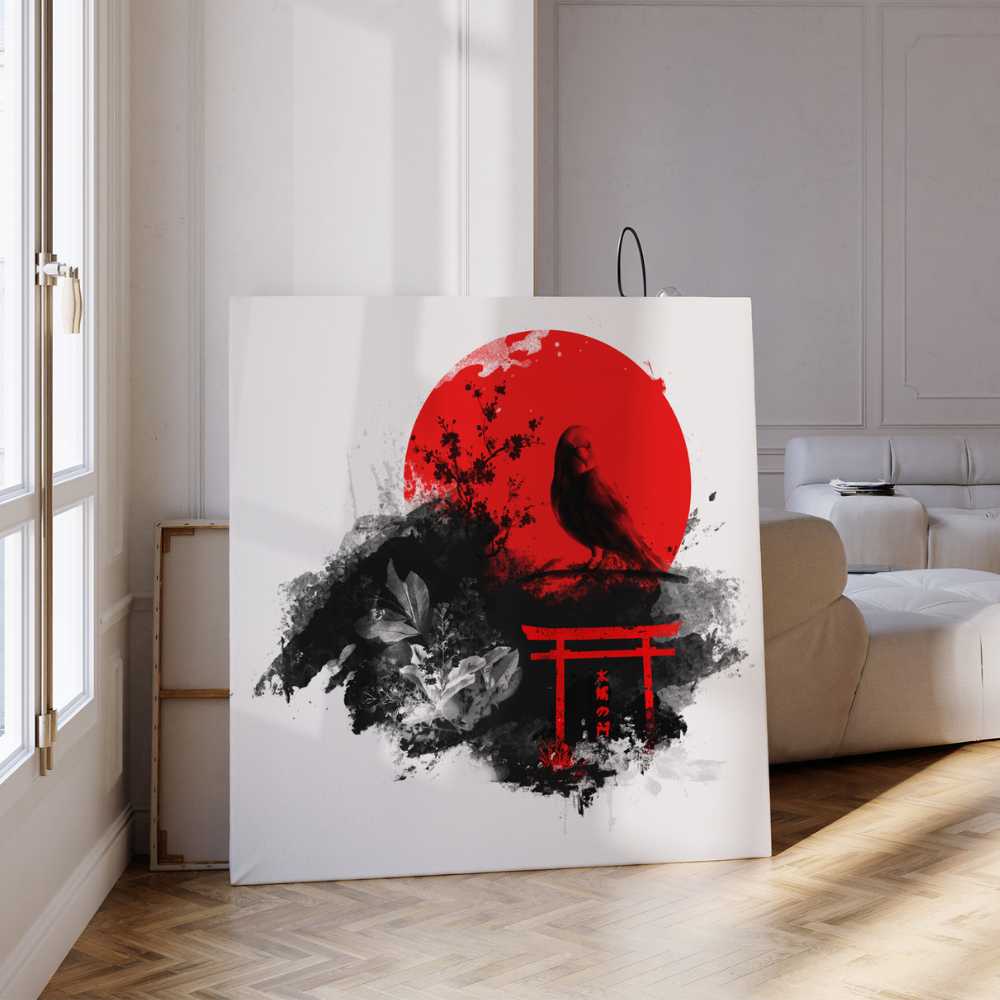A captivating wall art print that portrays the mystical allure of a red Japanese moon, set against the striking silhouette of an owl. Perfect for those who are captivated by the elegance and mystery of nature and the rich cultural tapestry of Japan, this artwork is a blend of natural wonder and traditional symbolism.