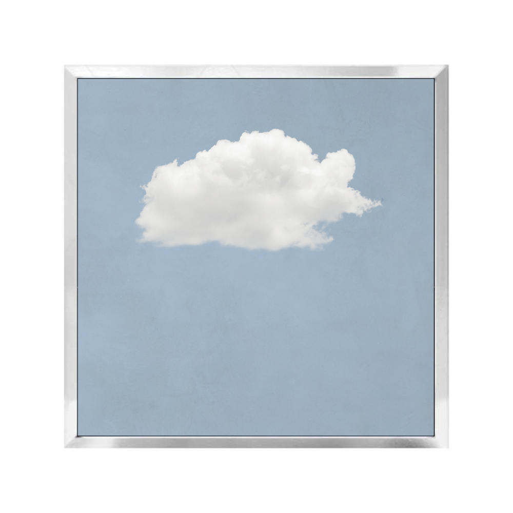 A contemplative piece of wall art that captures the singular beauty of a lone cloud adrift in an expansive blue background, emphasizing the tranquil and often overlooked moments of nature. Ideal for any space in need of a visual escape or a moment of Zen. Its minimalist aesthetic makes it highly versatile, suitable for modern, contemporary, and even traditional decors.