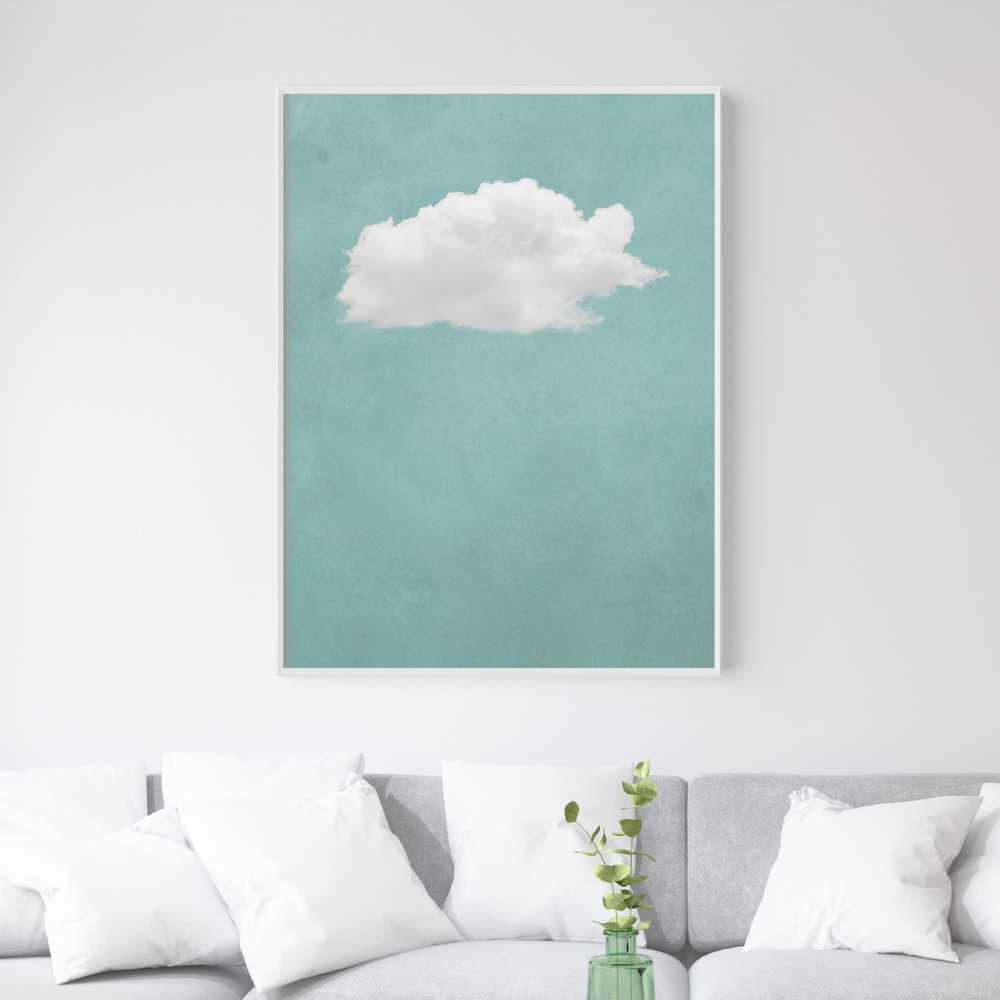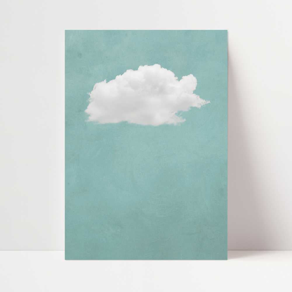 A contemplative piece of wall art that captures the singular beauty of a lone cloud adrift in an expansive mint green background, emphasising the tranquil and often overlooked moments of nature. Ideal for any space in need of a visual escape or a moment of Zen. Its minimalist aesthetic makes it highly versatile, suitable for modern, contemporary, and even traditional decors.