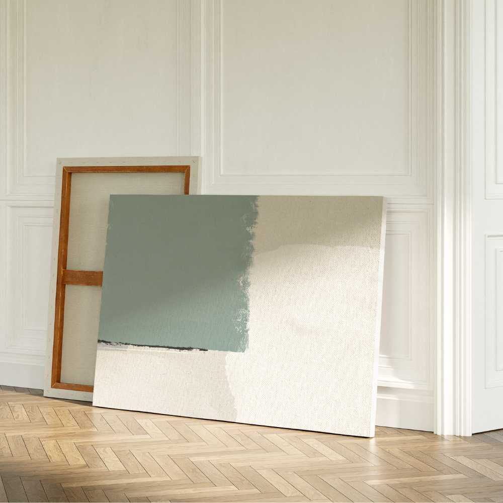 A captivating and sublime piece of abstract art that captures the essence of tranquility and natural elegance through its delicate interplay of sage green, cream and beige hues. This artwork is a gentle ode to the serene beauty of the earth's palette, inviting viewers into a world where color and form merge to create a landscape of peace and contemplation.