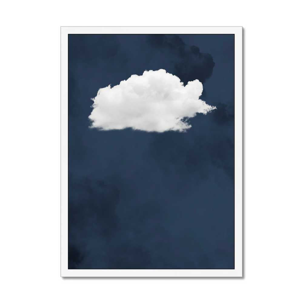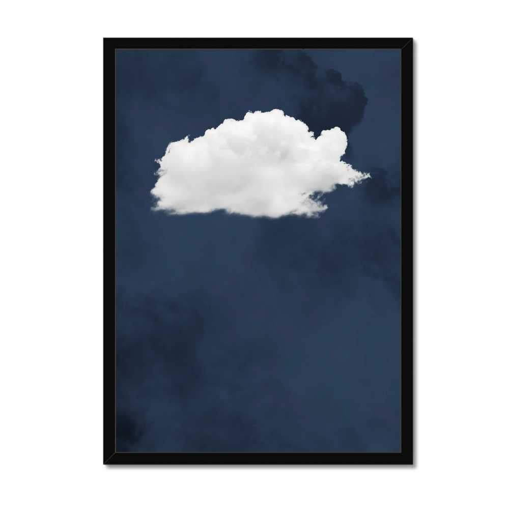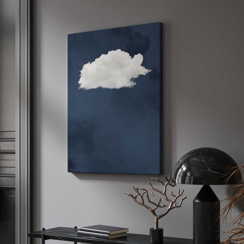 A contemplative piece of wall art that captures the singular beauty of a lone cloud adrift in an expansive navy blue background, emphasising the tranquil and often overlooked moments of nature. Ideal for any space in need of a visual escape or a moment of Zen. Its minimalist aesthetic makes it highly versatile, suitable for modern, contemporary, and even traditional decors.