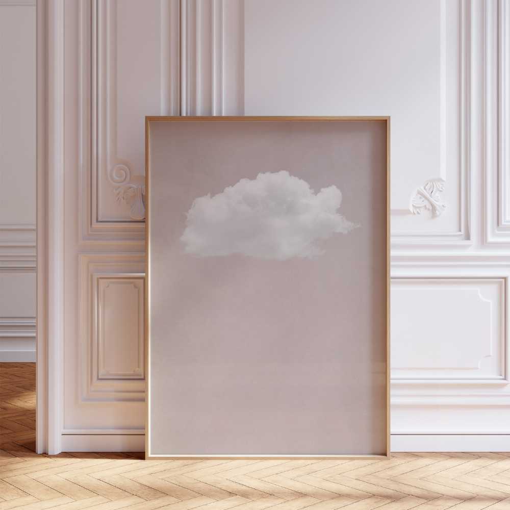 A contemplative piece of wall art that captures the singular beauty of a lone cloud adrift in an expansive beige background, emphasizing the tranquil and often overlooked moments of nature. Ideal for any space in need of a visual escape or a moment of Zen. Its minimalist aesthetic makes it highly versatile, suitable for modern, contemporary, and even traditional decors.