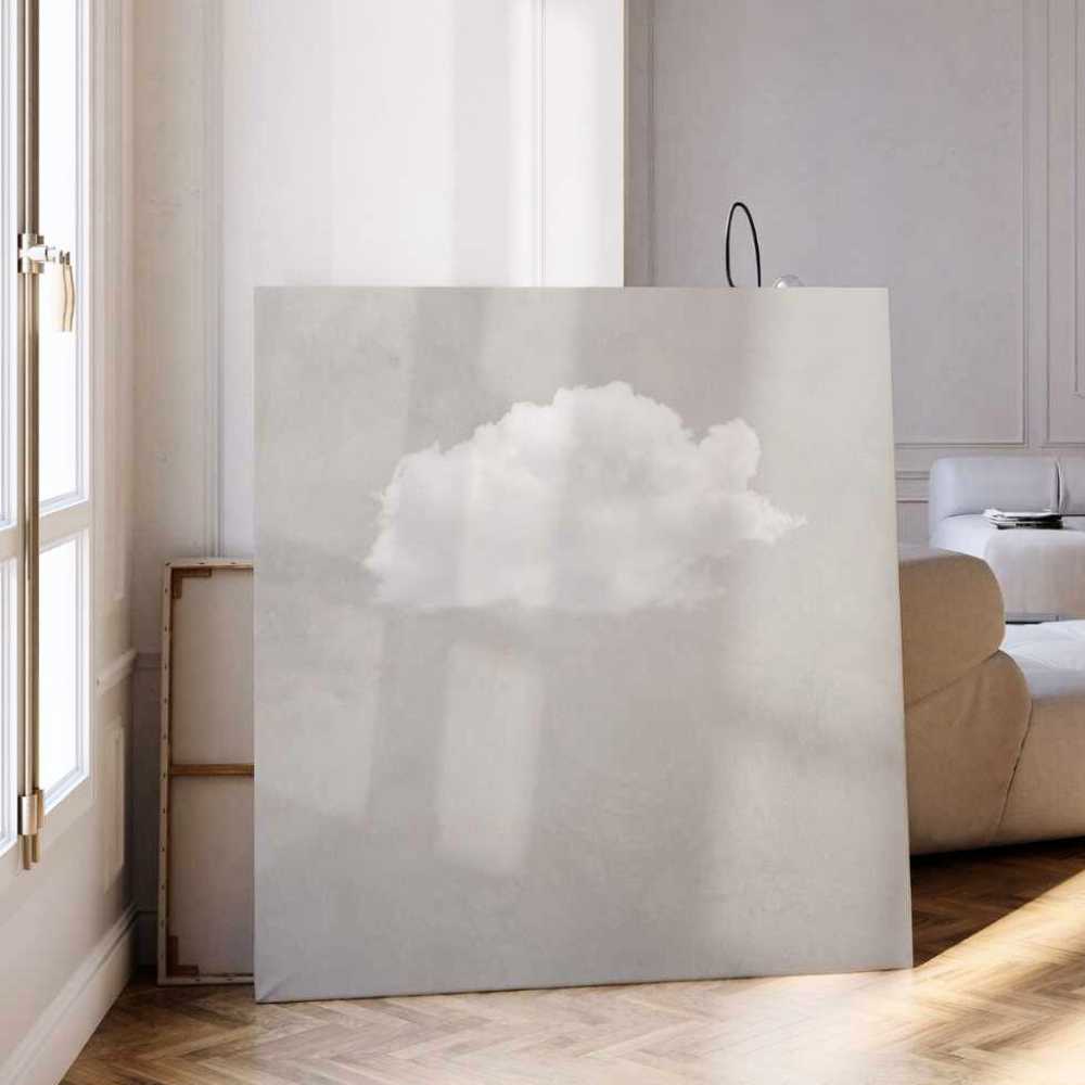 A contemplative piece of wall art that captures the singular beauty of a lone cloud adrift in an expansive grey background, emphasizing the tranquil and often overlooked moments of nature. Ideal for any space in need of a visual escape or a moment of Zen. Its minimalist aesthetic makes it highly versatile, suitable for modern, contemporary, and even traditional decors.