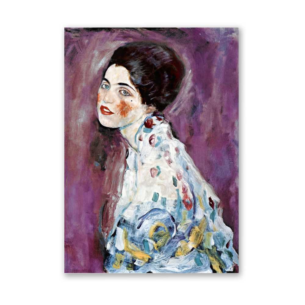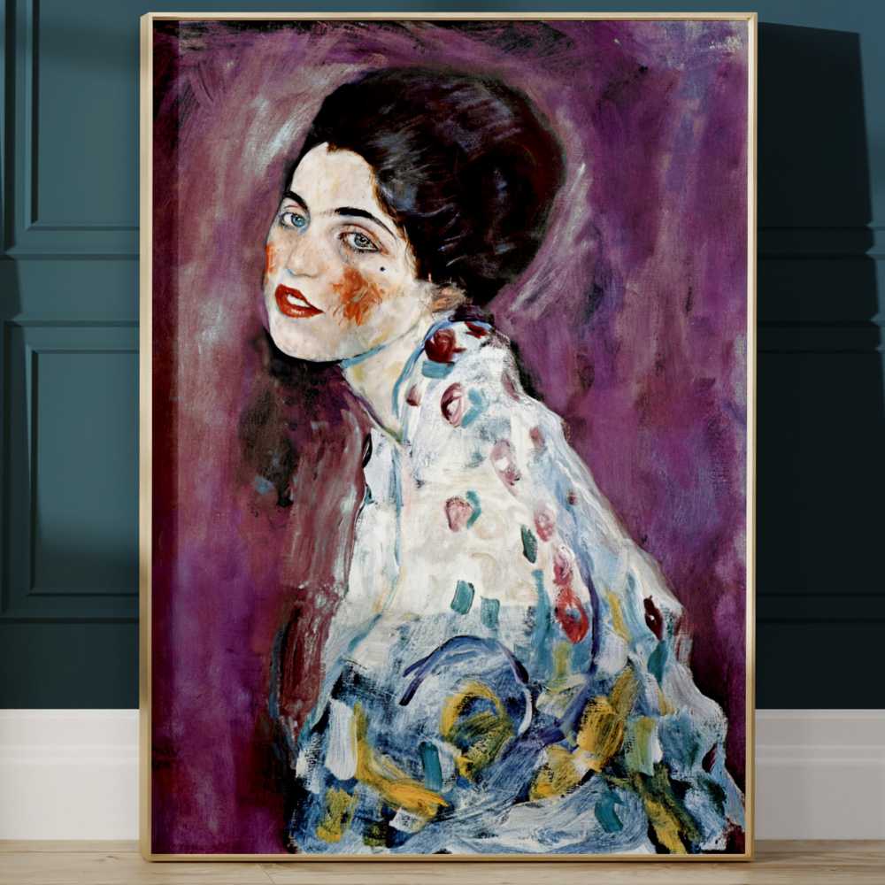 This wall art print features Portrait of a Lady, an exquisite and captivating work by Gustav Klimt, a prominent Austrian symbolist painter known for his decorative art style and his significant role in the Vienna Secession movement.