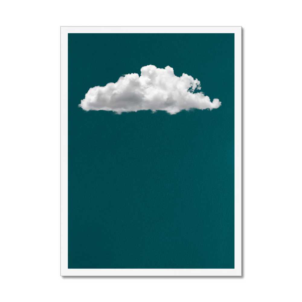 A contemplative piece of wall art that captures the singular beauty of a lone cloud adrift in an expansive turquoise green background, emphasizing the tranquil and often overlooked moments of nature. Ideal for any space in need of a visual escape or a moment of Zen. Its minimalist aesthetic makes it highly versatile, suitable for modern, contemporary, and even traditional decors.