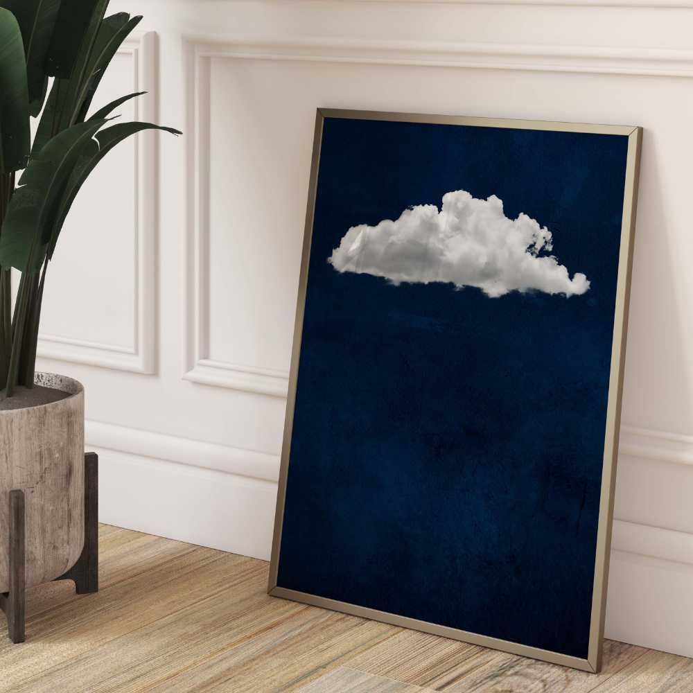 A contemplative piece of wall art that captures the singular beauty of a lone cloud adrift in an expansive blue background, emphasizing the tranquil and often overlooked moments of nature. Ideal for any space in need of a visual escape or a moment of Zen. Its minimalist aesthetic makes it highly versatile, suitable for modern, contemporary, and even traditional decors.