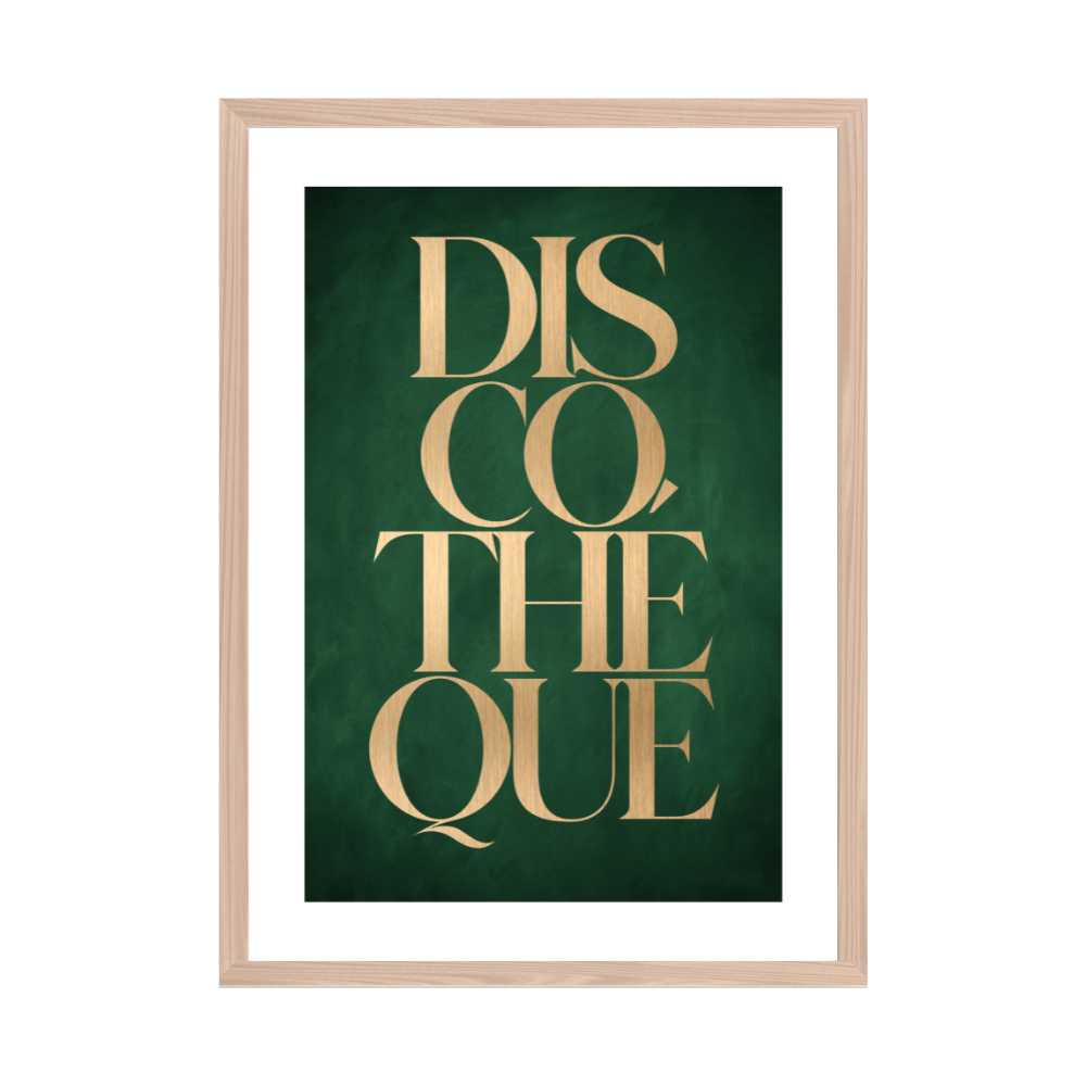 This wall art print features the word "Discotheque" presented in an innovative and stylish design, perfect for adding a touch of glamour and energy to any space. The letters of "Discotheque" are artfully stacked on top of each other, creating a striking and dynamic composition that captures the lively spirit of a disco setting.