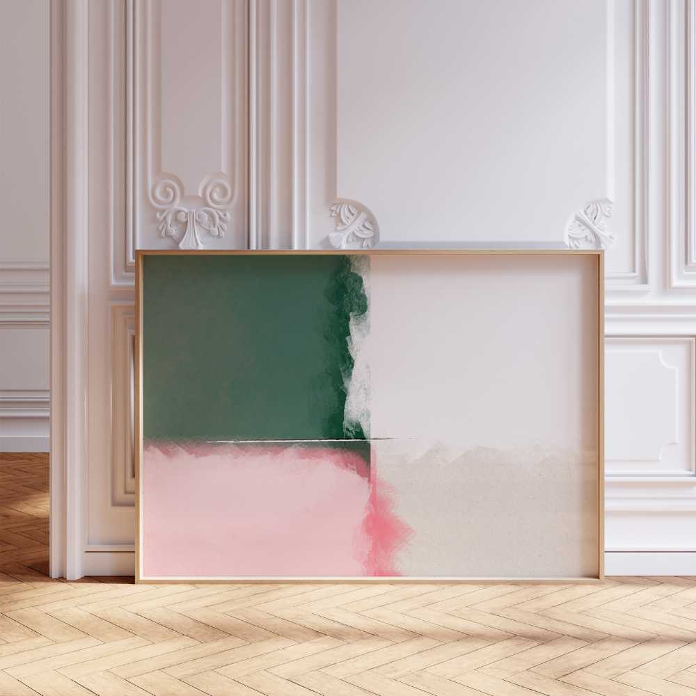 "Serene Quartet" is an enchanting wall art print that weaves together the delicate hues of pink, green, beige, and white into a cohesive tapestry of tranquil beauty. This abstract art captures the essence of serenity and modern elegance through its composition of colour blocks, each shade blending and contrasting in a dance of visual harmony. Designed for lovers of minimalist design and the soothing power of pastel colours, this piece is a celebration of balance and softness in the realm of abstract expression.