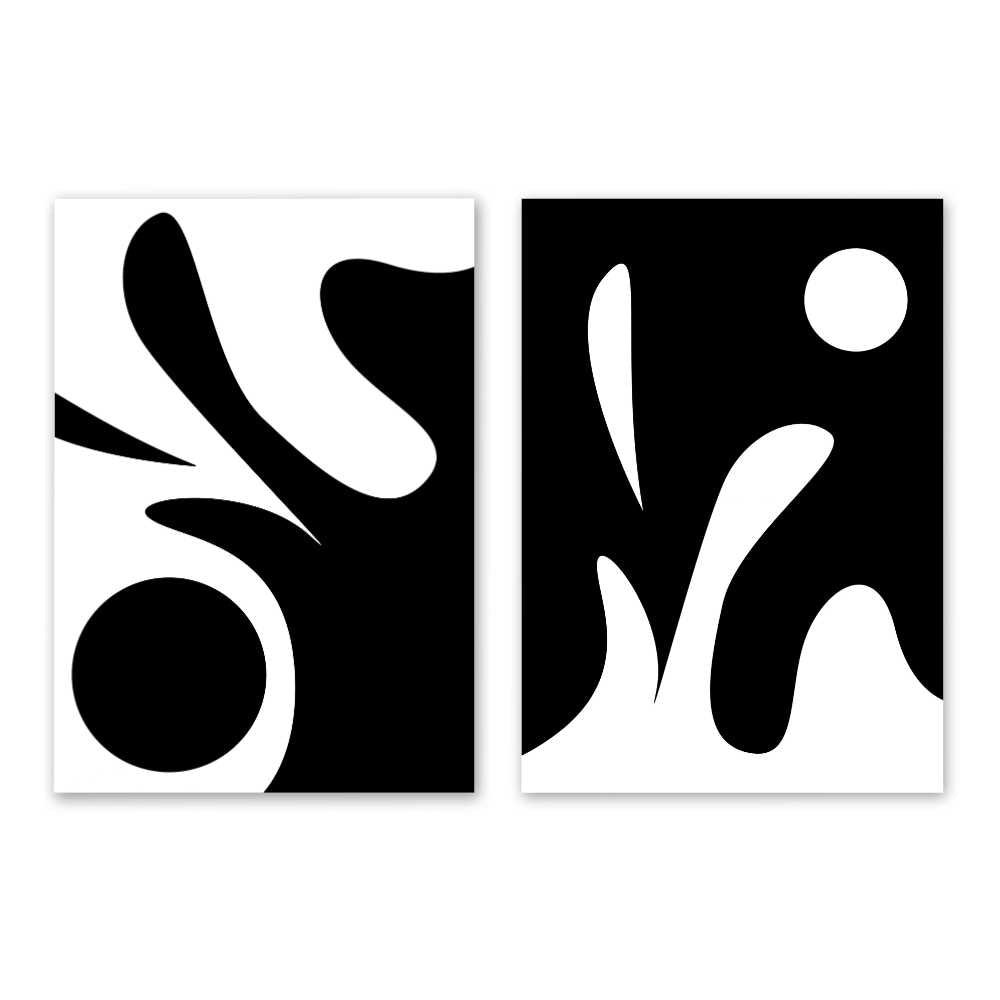 Delve into the world of sophisticated simplicity with our Black and White Duo, featuring two distinct yet harmoniously paired wall art prints. This set elegantly explores the timeless appeal of black and white, offering a splash piece composition. It's an ideal choice for those seeking to infuse their space with the classic elegance and modern minimalism of monochrome decor.