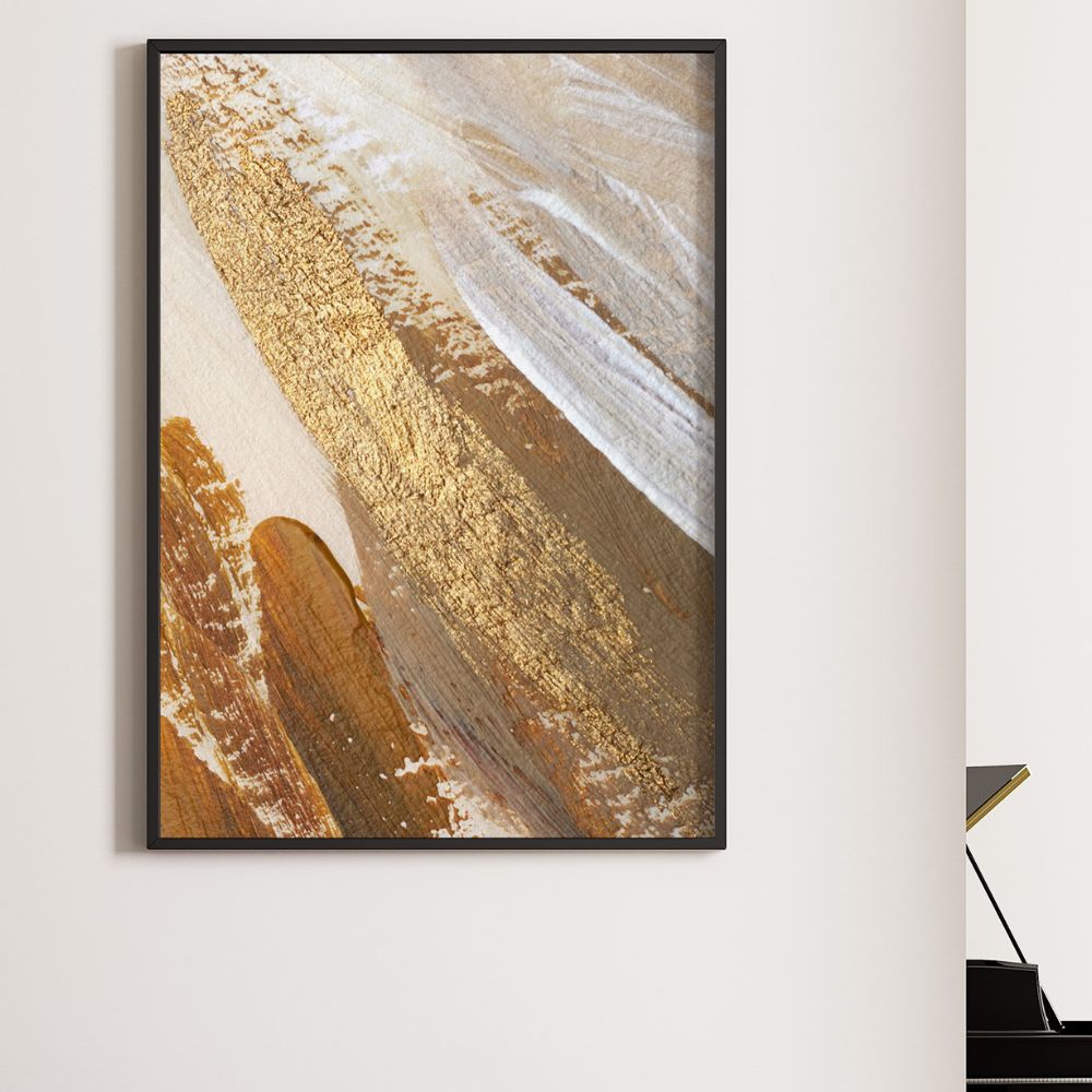 This wall art print features a sophisticated and contemporary composition of Gold and Beige Abstract Brushstrokes.The artwork is an elegant exploration of colour and texture, rendered in a minimalist yet impactful style that is perfect for modern interiors.The print is dominated by a palette of gold and beige tones, creating a warm and inviting atmosphere.