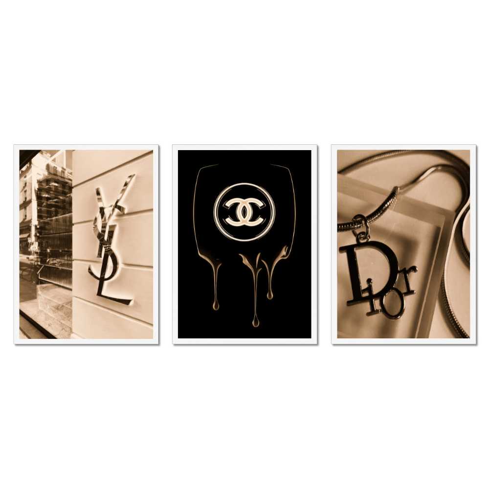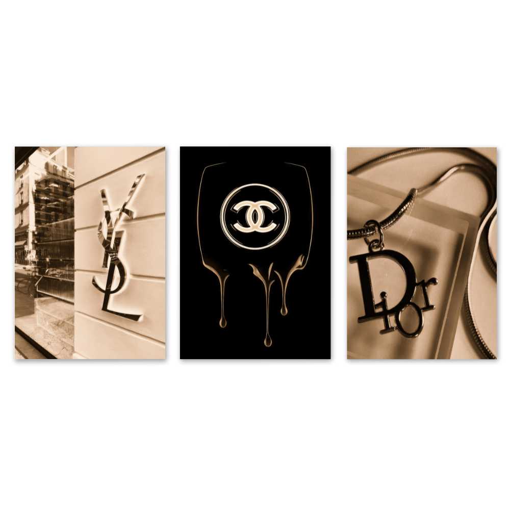 A stunning set of 3 fashion photo prints, each celebrating the timeless sophistication and groundbreaking creativity of Chanel, Dior, and Yves Saint Laurent. This exquisite collection captures the essence of these legendary fashion houses, showcasing iconic moments, designs, or emblematic logos that have left an indelible mark on the world of haute couture. Perfect for fashion aficionados and connoisseurs of chic, these prints bring the allure, style and glamour of the fashion world into your space.