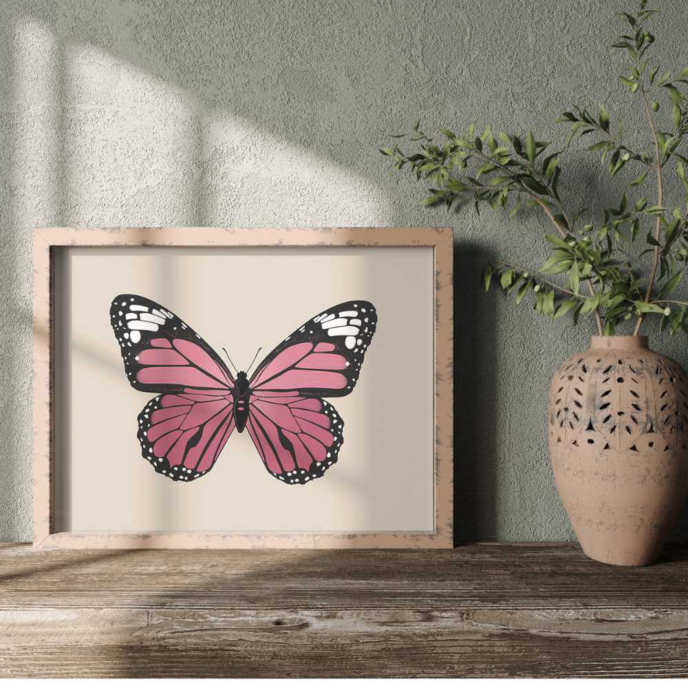 "Vintage Butterfly" is a captivating wall art piece that gracefully showcases the delicate beauty of a single pink vintage butterfly, poised against a warm beige canvas. This artwork is a celebration of nature's exquisite artistry, perfect for adding a touch of elegance and serenity to any space.