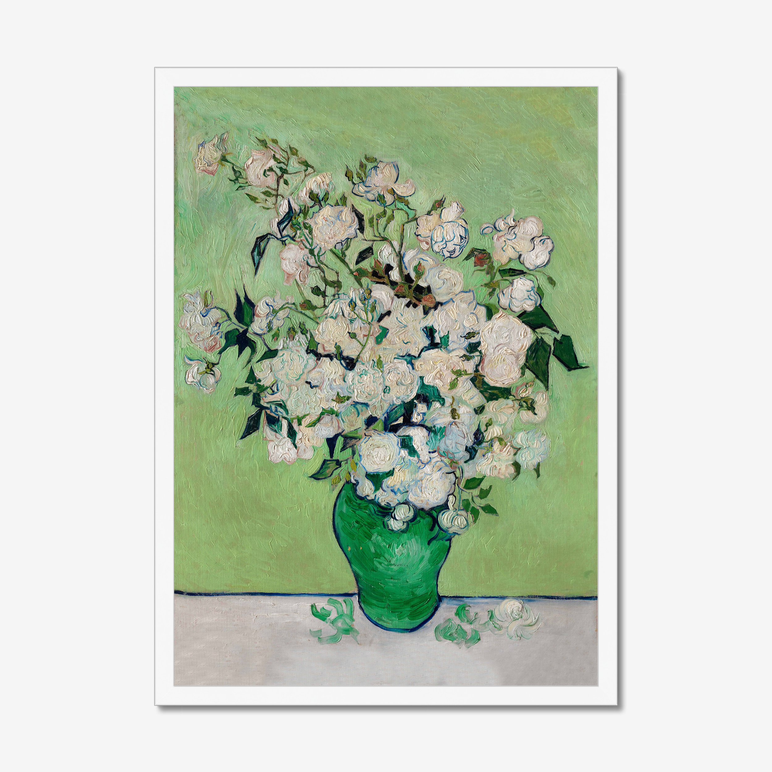 This wall art print features Vase of Roses, a stunning and vibrant work by Vincent Van Gogh, one of the most influential figures in the history of Western art. Painted during the latter part of his career, this piece exemplifies Van Gogh's intense emotional connection to nature and his mastery of colour and texture.