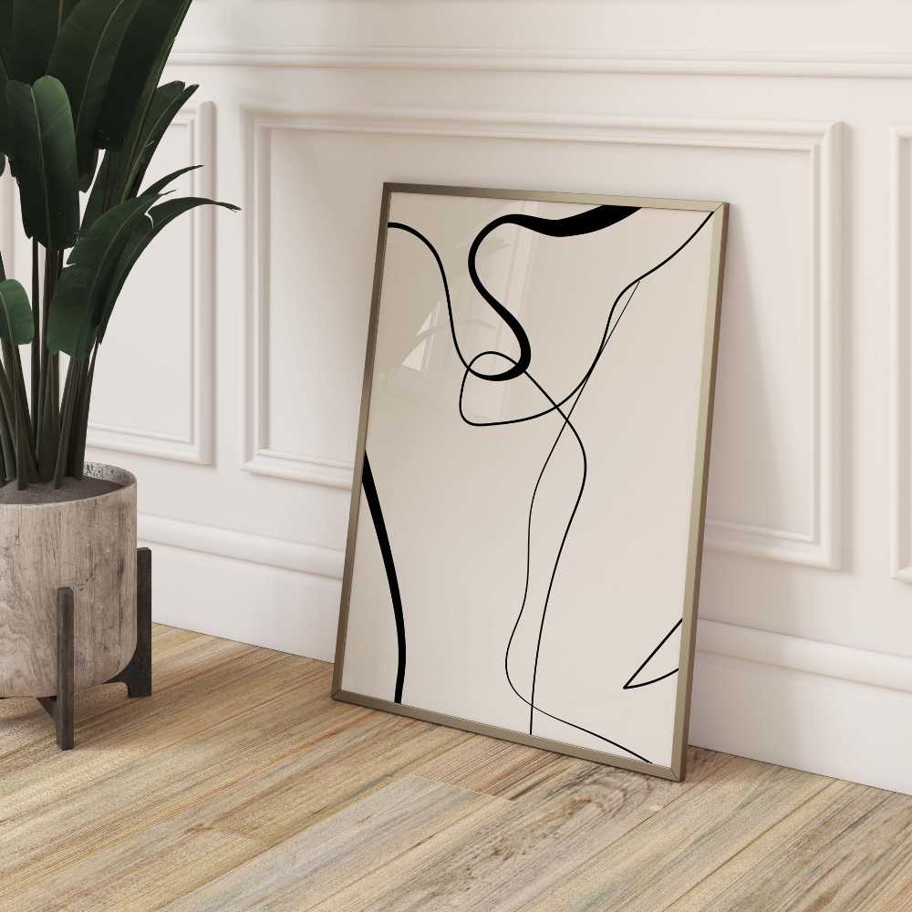 It's perfect for those who appreciate the beauty of minimalism and the power of line art to convey emotion and movement in a subtle yet impactful way. This print would make a refined and contemplative addition to any living space, office, or gallery, offering a touch of modern elegance and artistic flair.