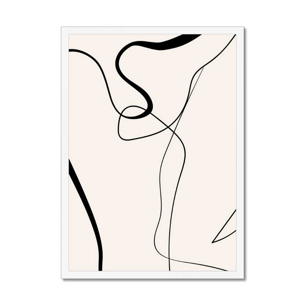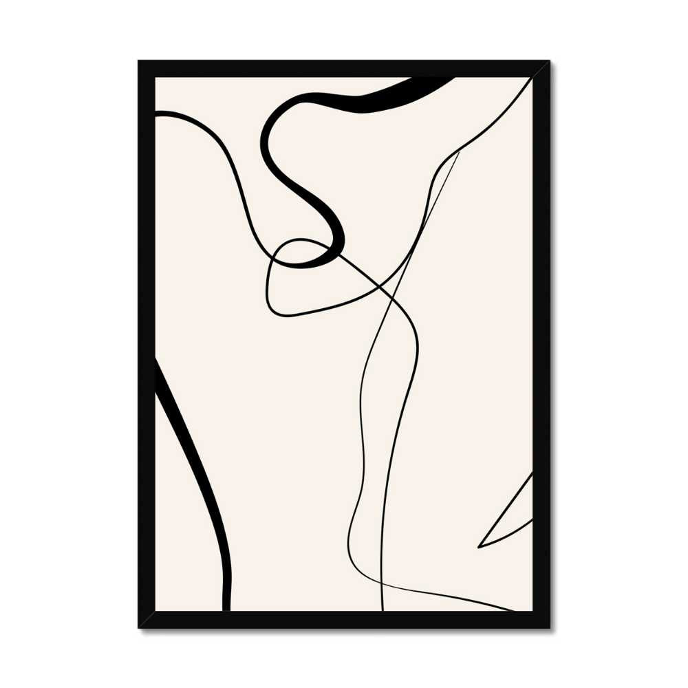 This wall art print features an elegant and minimalist piece of free following line art in black, set against a soothing beige background. The artwork is a beautiful example of contemporary minimalist design, where simplicity speaks volumes and every line holds significance.