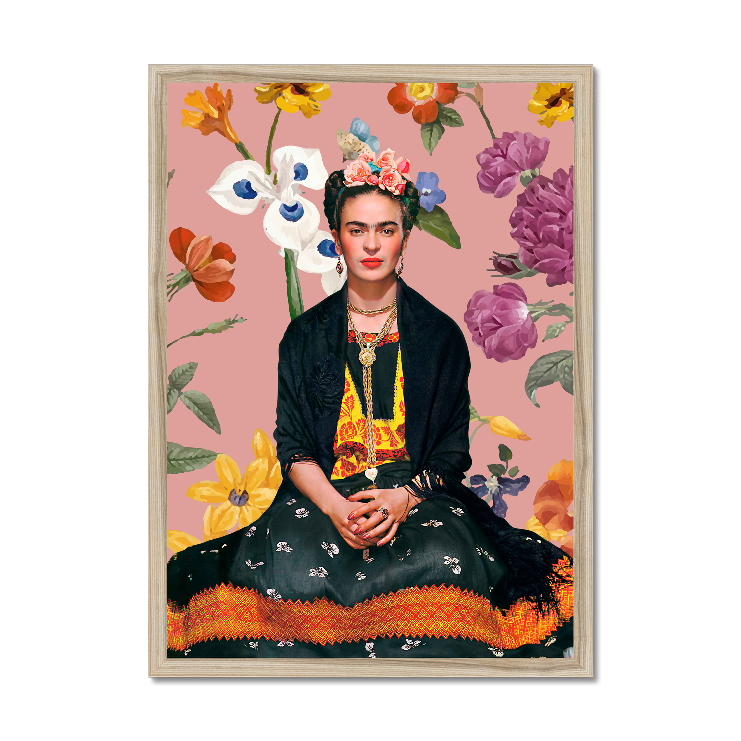 This wall art print features a striking portrayal of Frida Kahlo, one of the most iconic and influential artists of the 20th century, set against a backdrop of vivid and enchanting flowers. The artwork captures the essence of Kahlo's unique style and her deep connection with nature.