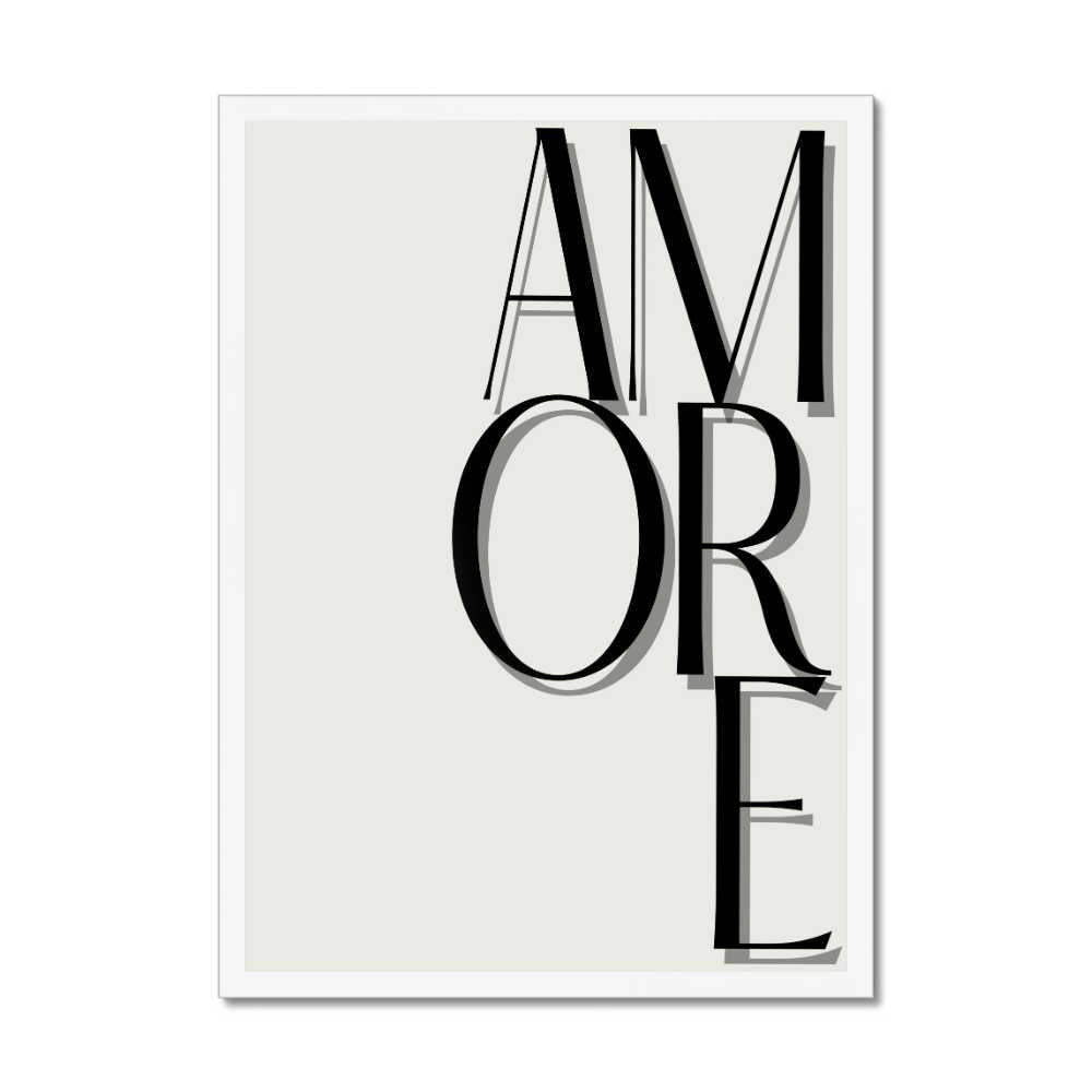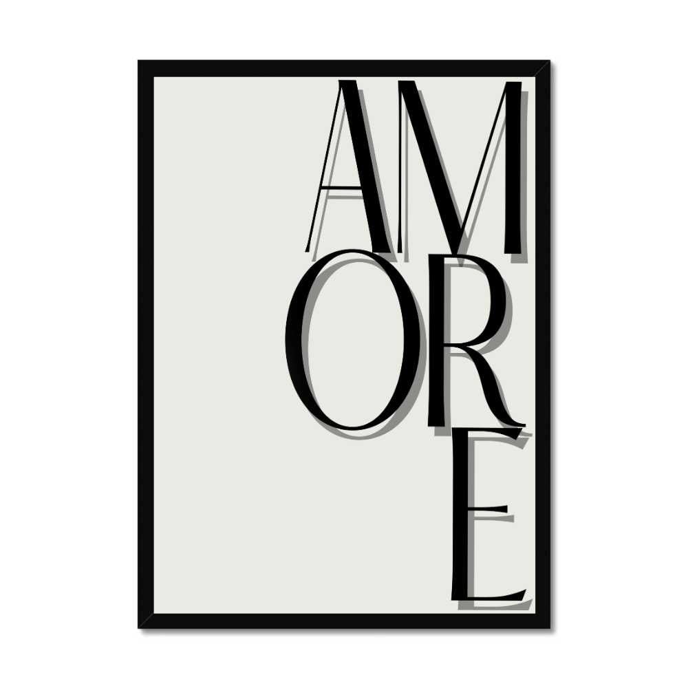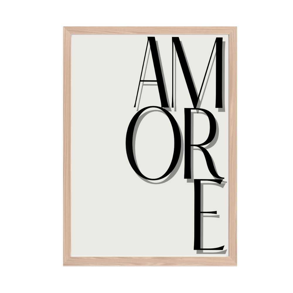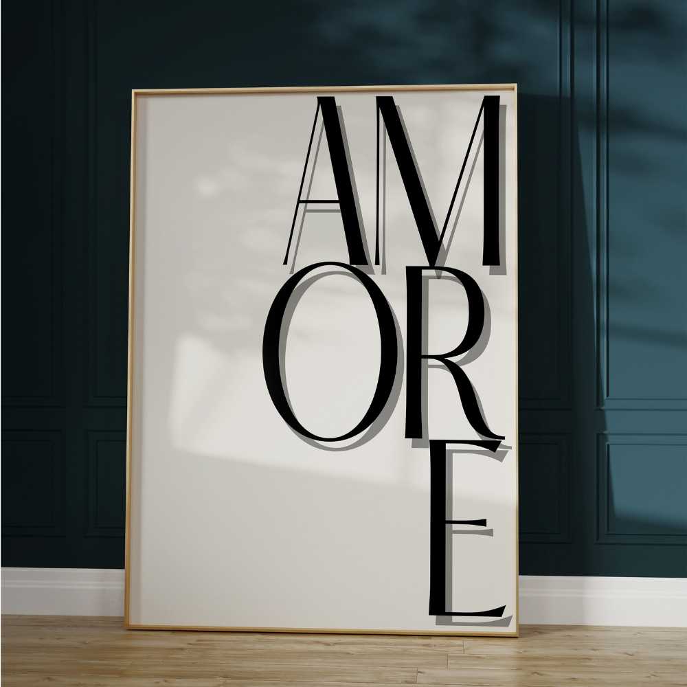 Celebrate the universal language of love with "Amore," a striking typography art piece that combines classic elegance with contemporary design. This captivating wall art features the word "Amore" – Italian for 'love' – presented in bold black lettering on a warm, beige canvas. It's a simple yet powerful statement piece, perfect for adding a touch of romance and sophistication to any space.